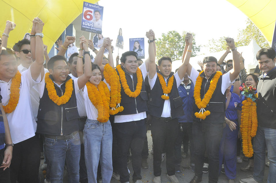 ขณะที่พรรคการเมืองอื่นต่างขนกองเชียร์มาร่วมสร้างสีสันเช่นกัน พรรคเพื่อไทย นำกองเชียร์มาชูป้ายผู้สมัครครบทั้ง 5 เขต กระจายตัวอยู่หลายจุดภายในพื้นที่รับสมัคร พรรคประชาชน มีมวลชนเข้าร่วมในเต็นท์ไม่มากนัก นั่งรอการรับสมัครอย่างเป็นระเบียบ ส่วนพรรคประชาธิปัตย์ ก็เป็นอีกพรรคที่น่าจับตา โดยมี อดีตผู้สมัครนายกองค์การบริหารส่วนจังหวัด หรือ นายกอุ๊ เดินทางมาสมัคร พร้อมระบุว่า พรรคประชาธิปัตย์ ส่งผู้สมัครครบทุกเขต แม้ไม่เน้นปริมาณกองเชียร์ นอกจากนี้ ยังมีพรรคการเมืองอื่นทยอยเดินทางมายื่นสมัคร อาทิ พรรคกล้าธรรม พรรครวมไทยสร้างชาติ พรรคพลังประชารัฐ พรรคเศรษฐกิจ และพรรคอื่นๆ เข้าร่วมบรรยากาศการรับสมัครอย่างต่อเนื่อง