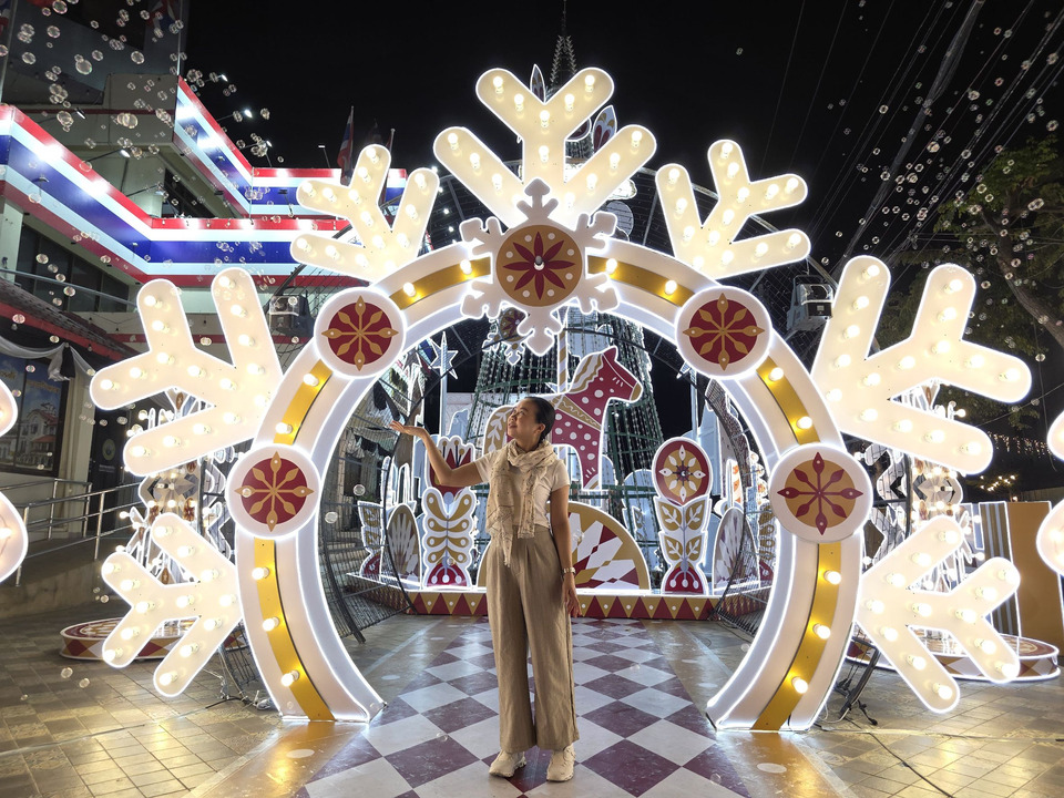 โทนสีแดง ขาว และทอง ถ่ายทอดความรู้สึกอบอุ่น สนุกสนาน และหรูหราแบบคลาสสิก เสริมเสน่ห์ด้วยไฟ Warm Light และแสงไฟระยิบระยับ ที่ช่วยเติมชีวิตชีวาให้พื้นที่สวยงามทั้งในช่วงกลางวันและยามค่ำคืน พร้อมเอฟเฟกต์หิมะและ Fog Bubble Machine เพิ่มบรรยากาศสุดโรแมนติกแบบจัดเต็ม วันละ 2 รอบ เวลา 19.00 น. และ 20.00 น. ประชาชนและนักท่องเที่ยวสามารถร่วมสัมผัสความสุขได้ ตั้งแต่วันนี้ถึงวันที่ 4 มกราคม พ.ศ. 2569