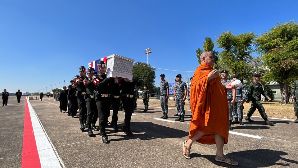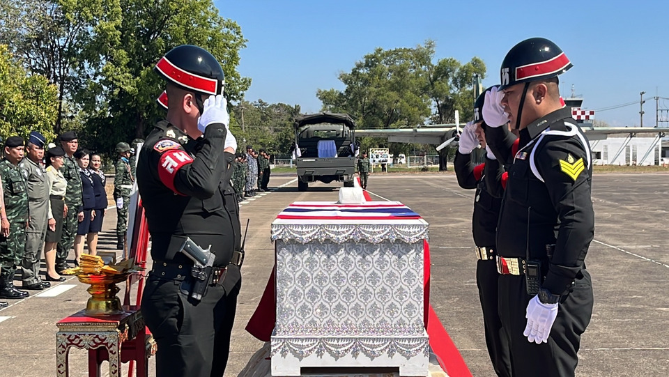 วันที่ 28 ธ.ค.68 ที่สนามบินกองบิน 21 จังหวัดอุบลราชธานี พล.อ.ชัยพฤกษ์ ด้วงประพัฒน์ เสนาธิการทหารบก เป็นประธานในพิธีรับร่าง พร้อมด้วยทหารกองเกียรติยศ หัวหน้าส่วนราชการ และประชาชน ร่วมกันรับร่าง พลทหารทิวตะวัน พลเยี่ยม ตำแหน่งพลปืนเล็ก สังกัดกองพันทหารราบที่ 2 กรมทหารราบที่ 2 รักษาพระองค์ ทหารกล้าที่สละชีพเพื่อปกป้องอธิปไตยของชาติ ณ สมรภูมิบ้านหนองจาน ตำบลโนนหมากมุ่น อำเภอโคกสูง จังหวัดสระแก้ว เมื่อวันที่ 26 ธันวาคม 2568 เพื่อเดินทางกลับสู่บ้านเกิด อำเภอชานุมาน จังหวัดอำนาจเจริญ