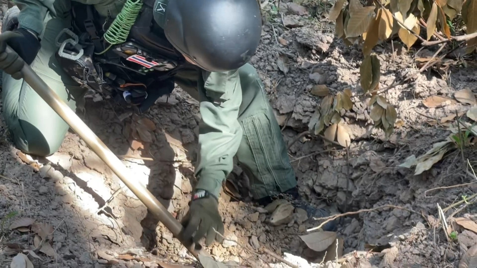 ร.ต.อ.วัชรินทร์ จันทน์หอม หัวหน้าชุดหน่วยปฏิบัติการพิเศษ EOD เก็บกู้และทำลายวัตถุระเบิด กก.ภ.จว.สุรินทร์ กล่าวว่า วันนี้ได้ลงพื้นที่เพื่อสำรวจตรวจสอบวัตถุระเบิด เพื่อความปลอดภัยในพื้นที่ ก่อนที่ชาวบ้านจะอพยพกลับเข้ามาอยู่ โดยจะตรวจสอบบริเวณรอบพื้นที่แหล่งชุมชนก่อน จากนั้นจึงจะเข้าไปสำรวจตามพื้นที่ไร่นาของชาวบ้านต่อไป การตรวจสอบในวันนี้ประมาณ 15 หลุม พบว่าเป็นระเบิดปืนใหญ่ จากการตรวจสอบทำงานทุกลูก และหากพบลูกที่ยังไม่ทำงานก็จะกั้นบริเวณไว้ก่อน ยังไม่สามารถทำลายได้ในเวลานี้ เนื่องจากอาจเกิดความเข้าใจผิดได้