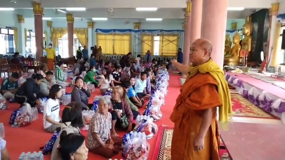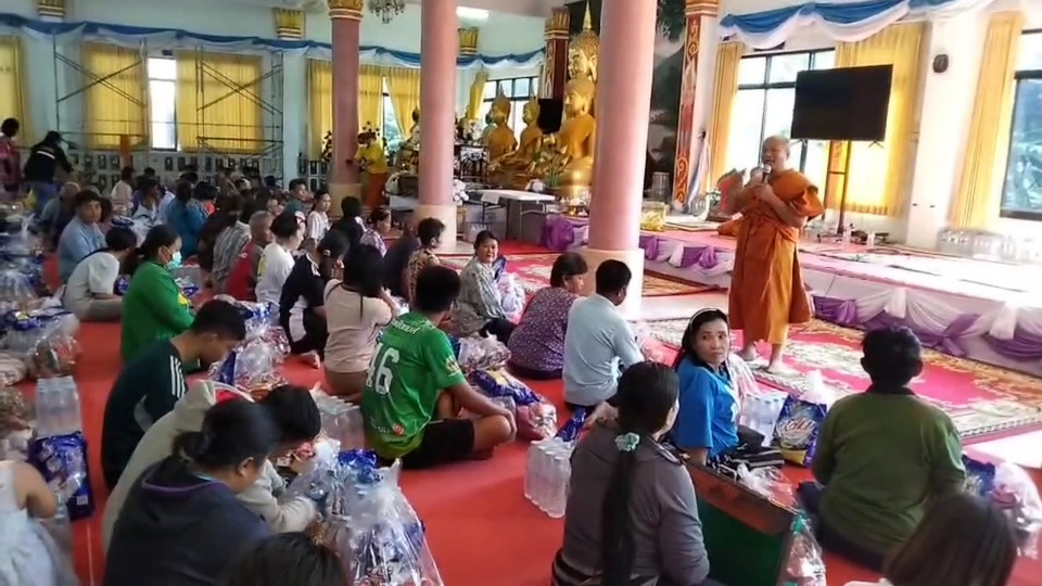 ขณะที่ชาวบ้านต่างเข้ามากราบและต่างรู้สึกซาบซึ้งถึงน้ำใจและความเมตตาของหลวงพ่อ ที่ให้พักพิงมาหลายรอบแล้ว รวมทั้งเวลาขาดอาหารขาดเสบียง วัตถุดิบเครื่องปรุงและของสดทำกับข้าว หลวงพ่อก็พยายามหาให้ไม่ขาด แม้ท่านจะไม่มีและลำบาก ขณะที่หลวงพ่อก็ได้ปะพรมน้ำมนต์เพื่อเป็นสิริมงคลให้กับประชาชนด้วยบรรยากาศที่ซาบซึ้งและอบอุ่นเป็นอย่างยิ่ง
