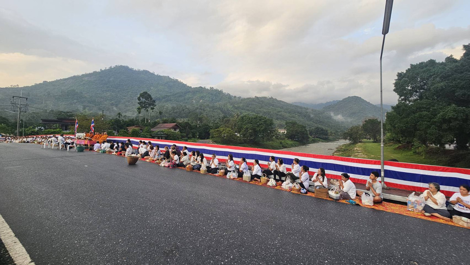 วันที่ 28 ธันวาคม 2568 ที่สะพานข้ามคลองท่าดี แลนมาร์คสำคัญของชุมชนคีรีวง แหล่งท่องเที่ยวชุมชนกลางหุบเขาหลวงชื่อดังระดับประเทศ ตั้งอยู่ในตำบลกำโลน อำเภอลานสกา จังหวัดนครศรีธรรมราช ผู้นำชุมชน พร้อมชาวชุมชน และนักท่องเที่ยวจากหลายพื้นที่ซึ่เป็นผู้มาพักในหลายโฮมเสตย์ในชุมชน ได้พร้อมใจกันมารวมตัวกันบนสะพานซึ่งถูกตกแต่งด้วยผืนธงชาติไทยยาวกว่า 200 เมตรทั้งสองข้างของสะพานเพื่อเป็นเครื่องหมายในการรวมใจของชาวคีรีวง และร่วมกันประกอบพิธีทำบุญตักบาตร
