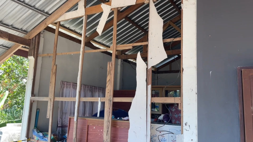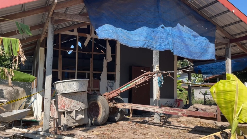 สำรวจหมู่บ้านกระสุนตก ใกล้ตาควาย พบเสียหายหลายหลัง ยังไม่ให้ชาวบ้านเข้าพื้นที่ รอ EODสำรวจความปลอดภัยรอบแหล่งชุมชนยืนยันว่าปลอดภัย จึงสามารถเข้ามาได้