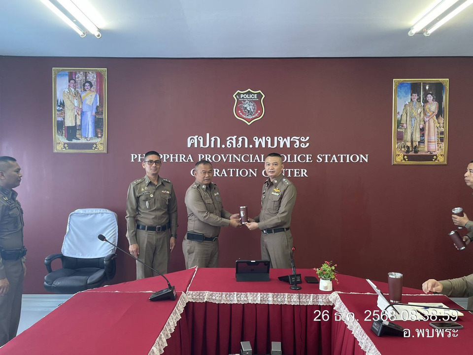 ในโอกาสนี้ ผกก.สภ.พบพระ ได้มอบแก้วน้ำเก็บความเย็น ให้เป็นของขวัญปีใหม่แก่ข้าราชการตำรวจในสังกัดทุกนาย และได้กำชับการปฏิบัติหน้าที่ของเจ้าหน้าที่ทุกฝ่ายอย่างเคร่งครัด ในการอำนวยความสะดวกการจราจรในห้วงเทศกาลปีใหม่ ระหว่างวันที่ 30-31 ธันวาคม 2568 และ วันที่ 1-5 มกราคม 2569