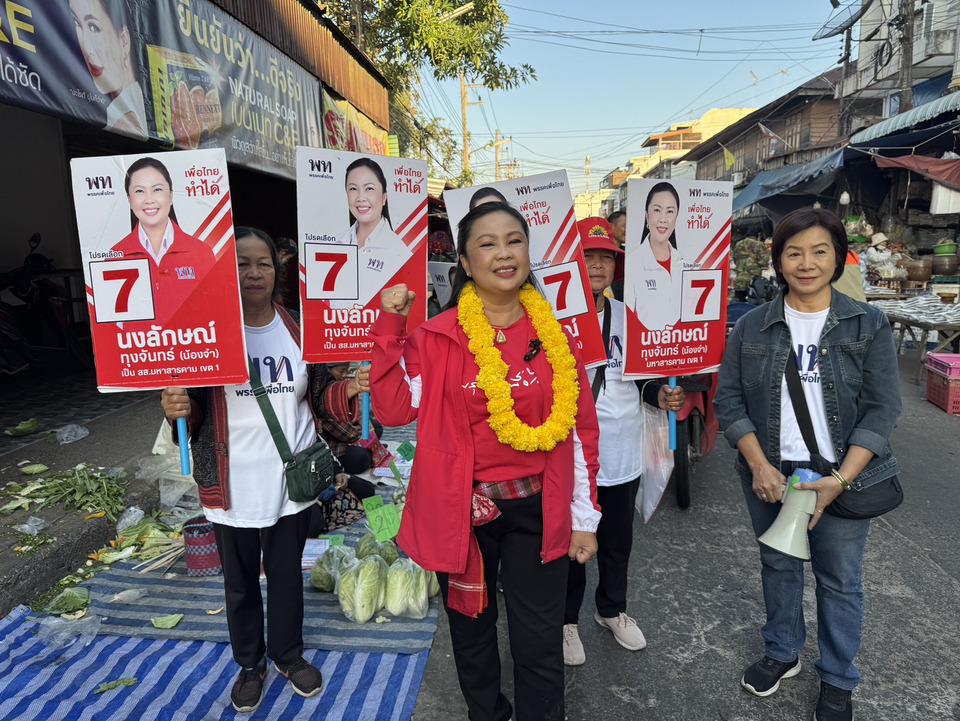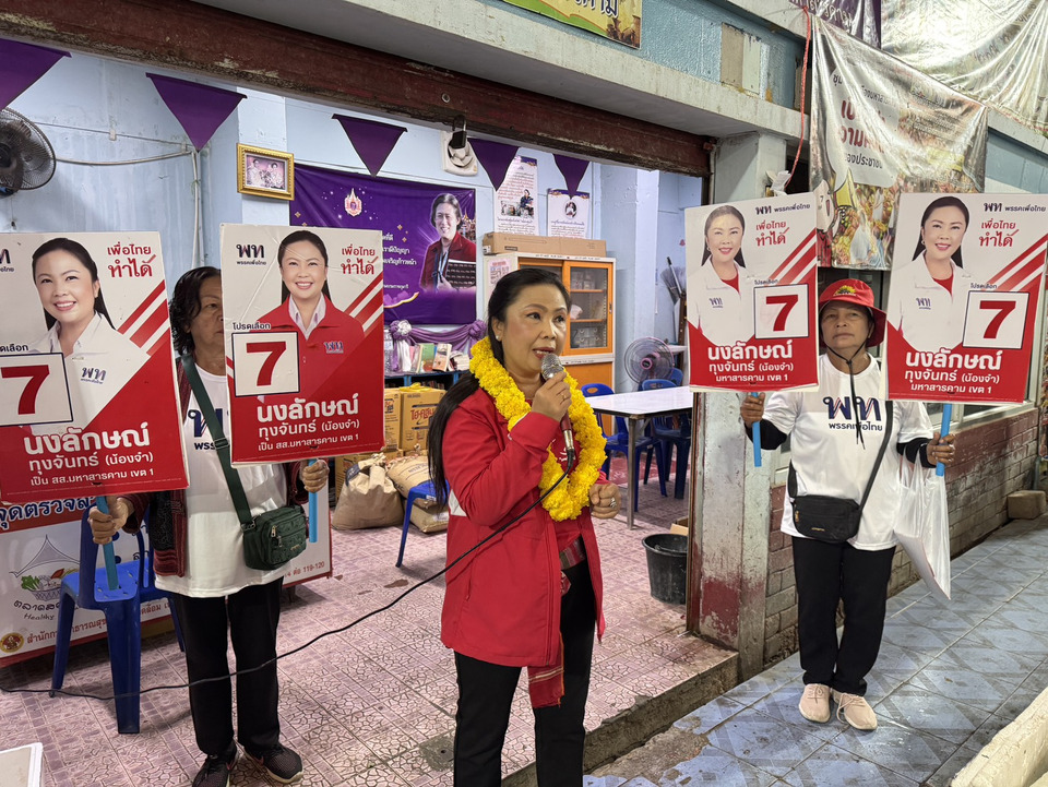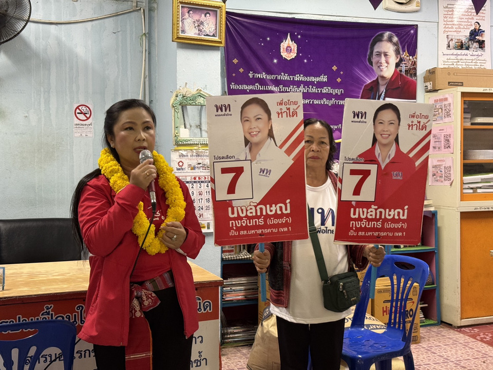 นางสาวนงลักษณ์ ทุงจันทร์ (น้องจ๋า) ผู้สมัคร ส.ส.เขต 1 มหาสารคาม พรรคเพื่อไทย พร้อมทีมงาน ลงพื้นที่พบปะประชาชนและหาเสียงที่ตลาดสดเทศบาลเมืองมหาสารคาม โดยได้แนะนำตัวกับพ่อค้าแม่ค้าและผู้มาจับจ่ายสินค้าทุกแผง พร้อมแจกแผ่นพับนโยบายพรรคเพื่อไทยและรับฟังปัญหา เพื่อนำไปสู่การพัฒนาเมืองมหาสารคามตามนโยบายยกระดับปากท้อง. ซึ่งมีความมั่นใจในการเข้ามารับไม้ต่อตำแหน่ง ส.ส.เขต 1 ซึ่งเดิมเป็นของ นพ.กิตติศักดิ์ คณาสวัสดิ์ หรือ “หมอติ๋ง” ที่ประกาศวางมือทางการเมือง น้องจ๋าซึ่งได้เสียงโหวตมาจาก ส.ส.ในจังหวัดมหาสารคาม ทั้ง 5 เขต โดยตนเองยืนยันว่า “ไม่รู้สึกหนักใจ” เพราะผลงานของพรรคเพื่อไทยในพื้นที่เป็นที่ประจักษ์ และตนเองทำงานกับชุมชนมาอย่างต่อเนื่องยาวนานกว่า 25 ปี จึงเชื่อมั่นว่าจะสามารถรักษาฐานเสียงเดิมไว้ได้อย่างแน่นอน.