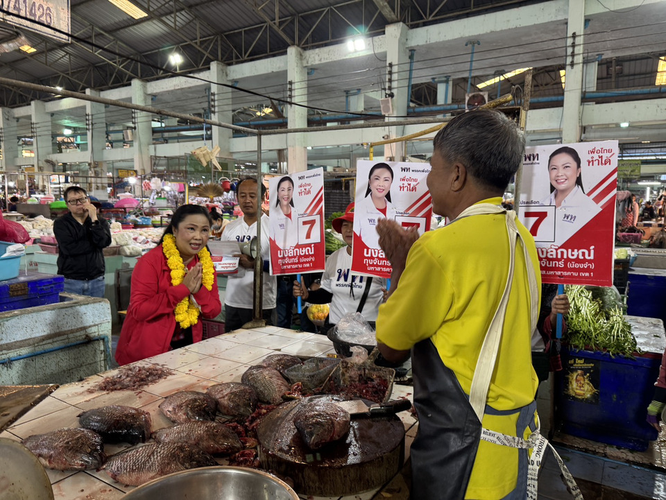 “น้องจ๋า” เพื่อไทย ลุยตลาดมหาสารคาม มั่นใจรับไม้ต่อ “หมอติ๋ง” รักษาเก้าอี้ สส.เขต 1