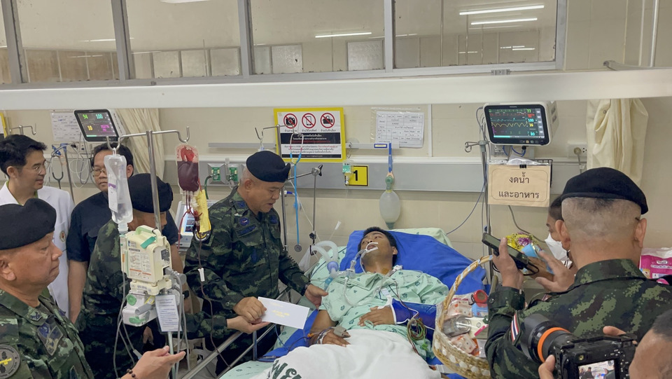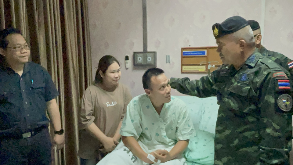 วันที่ 30 ธ.ค. 68 เมื่อเวลา11.00 น. ที่ตึกอุบัติเหตุและอาคาร 9 ชั้น 6 โรงพยาบาลสุรินทร์ พลโท วีระยุทธ รักศิลป์ แม่ทัพภาคที่ 2 พร้อมคณะเดินทางเข้าเยี่ยมดูอาการและให้กำลังใจทหารที่บาดเจ็บจากเหตุปะทะชายแดนไทย-กัมพูชา ที่ยังรักษาตัวอยู่โรงพยาบาลสุรินทร์ โดยมีเจ้าหน้าที่บุคลากรทางการแพทย์โรงพยาบาลสุรินทร์ พาเข้าเยี่ยมดูอาการของกำลังพลทหารที่บาดเจ็บ จากนั้นได้เข้าเยี่ยม จ.ส.ต.สุจินต์ จิตกรียาน สังกัดกองพันทหารช่างที่ 8 กองพลทหารม้าที่ 1 ทหารขาขาดรายที่ 11 เจ้าหน้าที่หน่วยเก็บกู้วัตถุระเบิด ที่เหยียบทุ่นระเบิดขณะปฏิบัติหน้าที่เข้าเก็บกู้ระเบิดในพื้นที่เขาสัตตะโสม อ.กันทรลักษ์ จ.ศรีสะเกษ ได้รับบาดเจ็บขาซ้ายขาดและมีบาดแผลฉกรรจ์ที่ตาด้านซ้าย ล่าสุดอาการปลอดภัยและสภาพจิตใจดีขึ้นตามลำดับโดยมี นพ.ชวัมย สืบนุการณ์ ผู้อำนวยการโรงพยาบาลสุรินทร์ พร้อมทีมแพทย์ผู้เชี่ยวชาญดูแลรักษาอย่างใกล้ชิดตลอด 24 ชั่วโมง