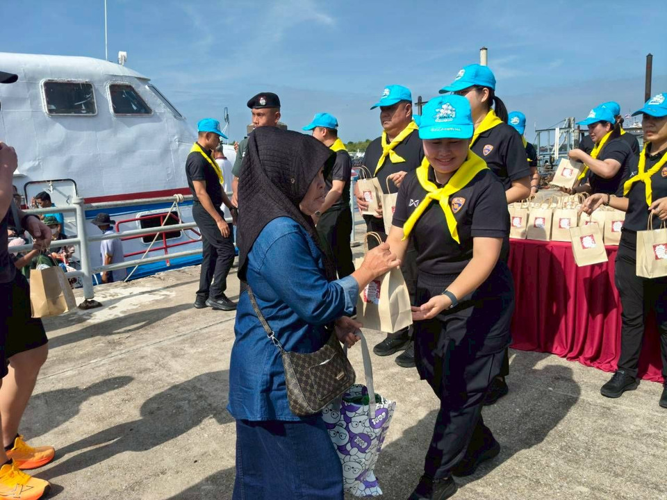 นอกจากการอำนวยความสะดวกด้านงานตรวจคนเข้าเมืองแล้ว ทางคณะเจ้าหน้าที่ยังได้ร่วมกันจัดทำและมอบชุดของว่าง อาทิ ขนม น้ำผลไม้ และน้ำดื่ม จำนวน 150 ชุด ให้แก่ประชาชนและนักท่องเที่ยวที่เดินทางผ่านท่าเรือตำมะลัง เพื่อสร้างรอยยิ้มและบรรยากาศที่อบอุ่นในช่วงเทศกาลสำคัญ