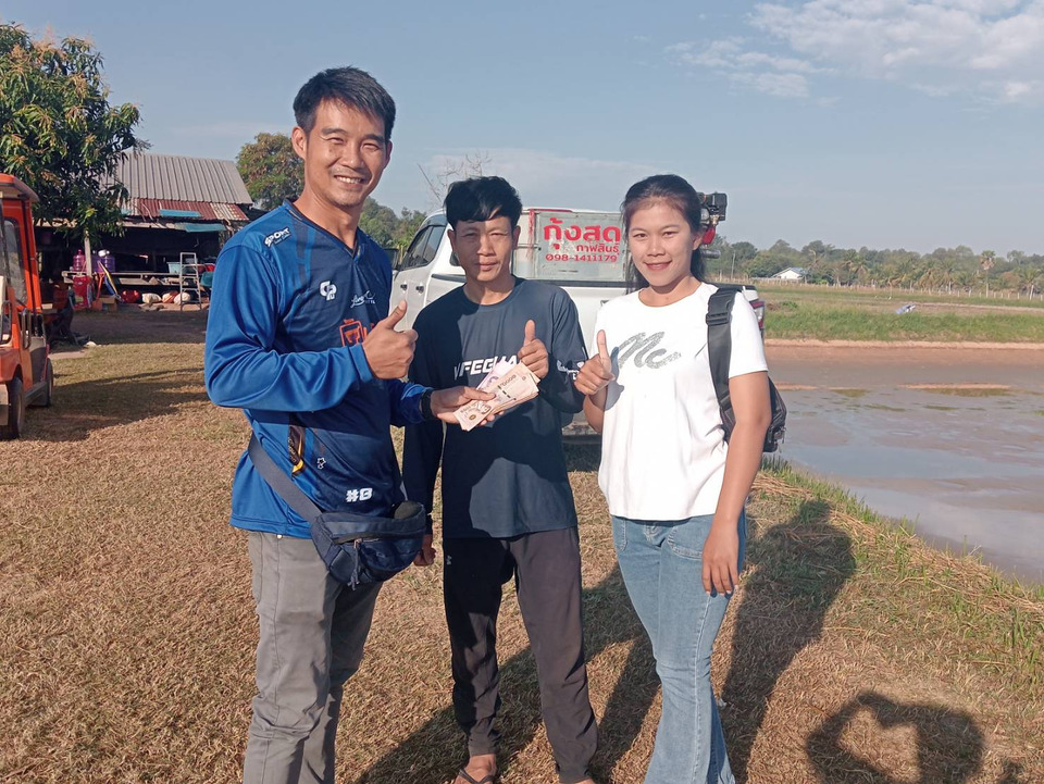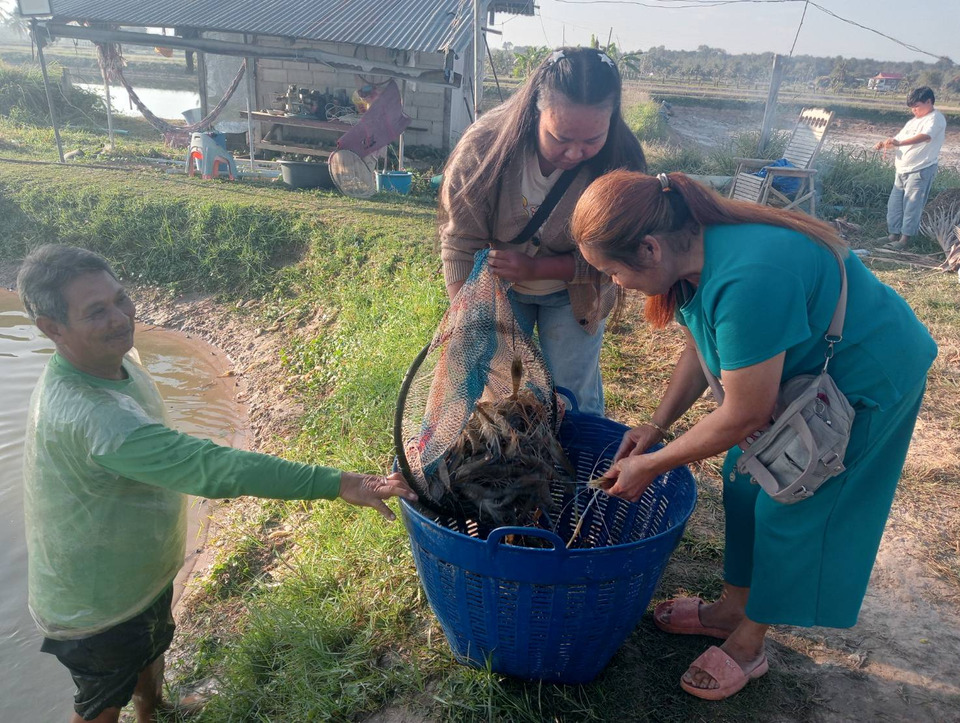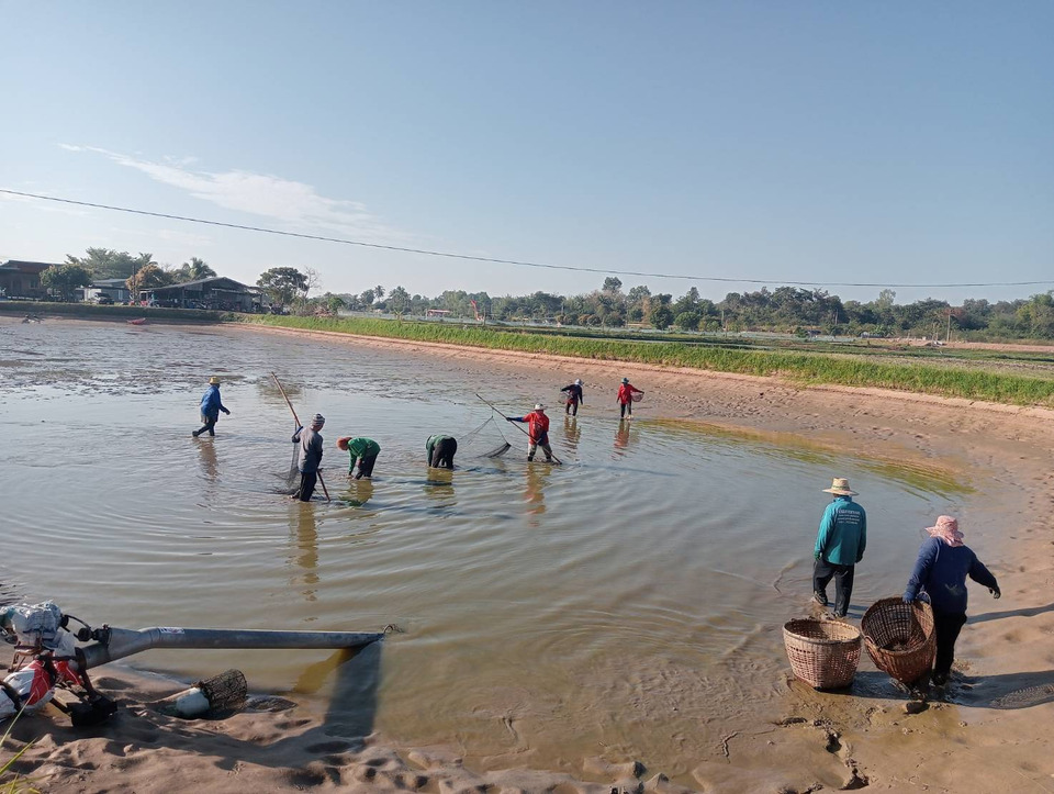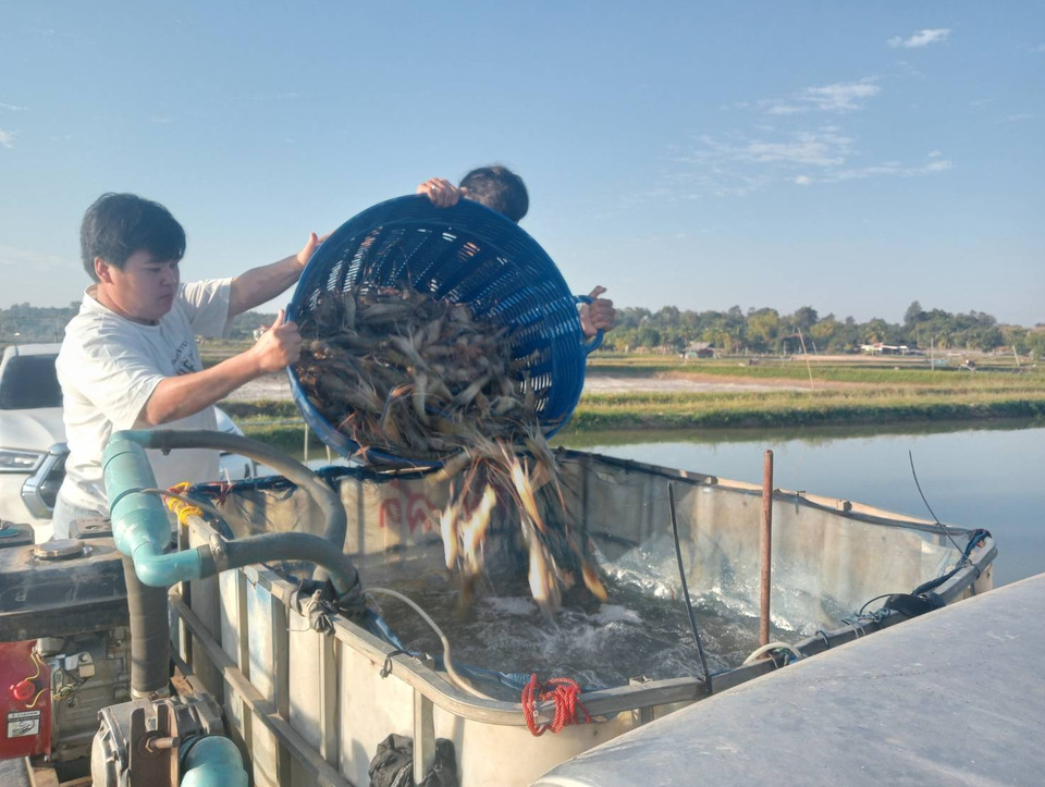 นายณัฐวุฒิ วิริยสถิตย์กุล อายุ 42 ปี เจ้าของศิริวรรณฟาร์มกุ้ง กล่าวว่า การจับกุ้งก้ามกรามจำหน่ายในช่วงปลายปีนี้ เริ่มเปิดตลาดมาตั้งแต่ต้นเดือน พ.ย.-ธ.ค.เป็นต้นมา จากผลดีของโครงการคนละครึ่ง ทำให้ลูกค้ามีกำลังซื้อกุ้งก้ามกรามไปบริโภค และต่อเนื่องมาถึงช่วงเทศาลส่งท้ายปีเก่าต้อนรับปีใหม่ สำหรับตนมีพื้นที่เลี้ยงกุ้งจำนวน 20 ไร่ ทำการเลี้ยงหลายรุ่นเพื่อป้องกันปัญหากุ้งขาดแคลน และให้เกิดความต่อเนื่อง เพียงพอต่อความต้องการของพ่อค้าคนกลาง ที่นำรถมาขนส่งกุ้งไปเสิร์ฟลูกค้าตามร้านอาหารทั่วไปในภาคตะวันออกเฉียงเหนือ รวมทั้ง สปป.ลาวด้วย