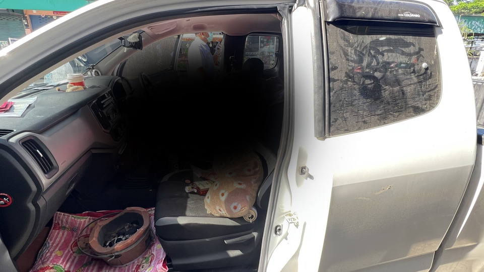 เจ้าหน้าที่ตำรวจได้ตรวจสอบภายในรถ พบเตาอังโล่มีถ่านไหม้ดับไปแล้ว 1 เตา นอกจากนั้นยังพบสุรายี่ห้อหนึ่งวางอยู่เบาะนั่งด้านข้างคนขับ 1 แบน มีแหนม วางอยู่อีก 1ห่อ และมีเบียร์ 1กระป๋อง ส่วนบริเวณหน้ากระจกรถด้านในพบบัตรประชาชนวางไว้บนกระดาษสีขาวเขียนข้อความไว้ด้วยลายมืออีก จำนวน 1 ฉบับ