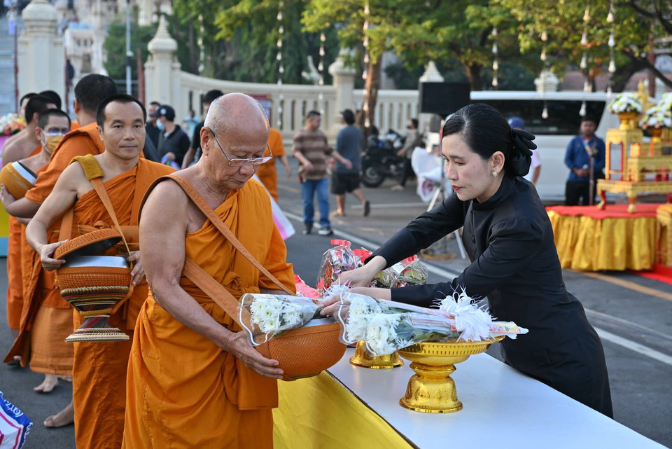 วันที่ 1 ม.ค.69 ผู้สื่อข่าวรายงานบรรยากาศของการทำบุญของประชาชนในพื้นที่อำเภอเมืองนครปฐม เนื่องในโอกาสวันขึ้นปีใหม่ โดยตั้งแต่เช้าตรู่ ที่บริเวณลานหน้าพระร่วงโรจนฤทธิ์ องค์พระปฐมเจดีย์ อำเภอเมือง จังหวัดนครปฐม นางสาวอโรชา นันทมนตรี ผู้ว่าราชการจังหวัดนครปฐม พร้อมด้วย รองผู้ว่าราชการจังหวัด รองนายกเหล่ากาชาดจังหวัด หัวหน้าส่วนราชการ ข้าราชการ เจ้าหน้าที่จากหน่วยงานต่างๆ และประชาชนชาวจังหวัดนครปฐมเป็นจำนวนมาก ร่วมทำบุญตักบาตรข้าวสาร อาหารแห้ง ถวายแด่พระสงฆ์ เนื่องในโอกาสต้อนรับวันขึ้นปีใหม่ 2569 เพื่อถวายพระราชกุศลแด่ พระบาทสมเด็จพระบรมชนกาธิเบศร มหาภูมิพลอดุลยเดชมหาราช บรมนาถบพิตร สมเด็จพระนางเจ้าสิริกิติ์ พระบรมราชินีนาถ พระบรมราชชนนีพันปีหลวง และถวายเป็นพระราชกุศลแด่ พระบาทสมเด็จพระเจ้าอยู่หัว สมเด็จพระนางเจ้าฯ พระบรมราชินี และพระบรมวงศานุวงศ์ทุกพระองค์ อีกทั้งเพื่อความเป็นสิริมงคล ความสงบสุขแก่ชีวิตและครอบครัว ตลอดปี 2569