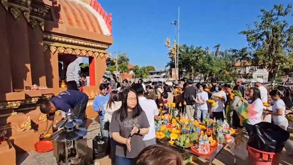 ประชาชนแห่กราบไหว้ขอพรศาลหลักเมือง เสาร์แรกของปีเพื่อความเป็นสิริมงคลแก่ครอบครัว