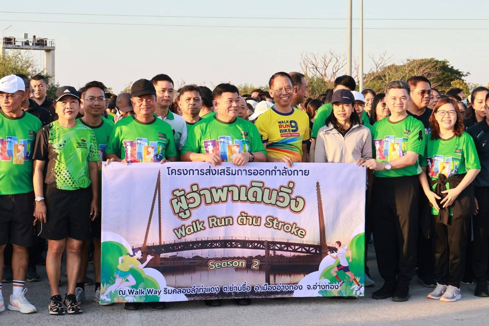 เมื่อวันที่ 6 ม.ค.69 เวลา 17.00 น. ณ ทางเดินวิ่ง (Walk RUN) ริมคลองลำท่าแดง ตำบลย่านซื่อ อำเภอเมืองอ่างทอง นายนที มนตริวัต ผู้ว่าราชการจังหวัดอ่างทอง นำหัวหน้าส่วนราชการและนักวิ่งชาวอ่างทอง ร่วมออกกำลังกายบนเส้นทาง Walk RUN แห่งใหม่ของจังหวัดอ่างทอง บริเวณริมคลองลำท่าแดง สวนน้ำเฉลิมพระเกียรติ ฯ ในกิจกรรม Kick off "ผู้ว่าพาเดิน วิ่ง Walk RUN ต้าน Stroke Season 2"