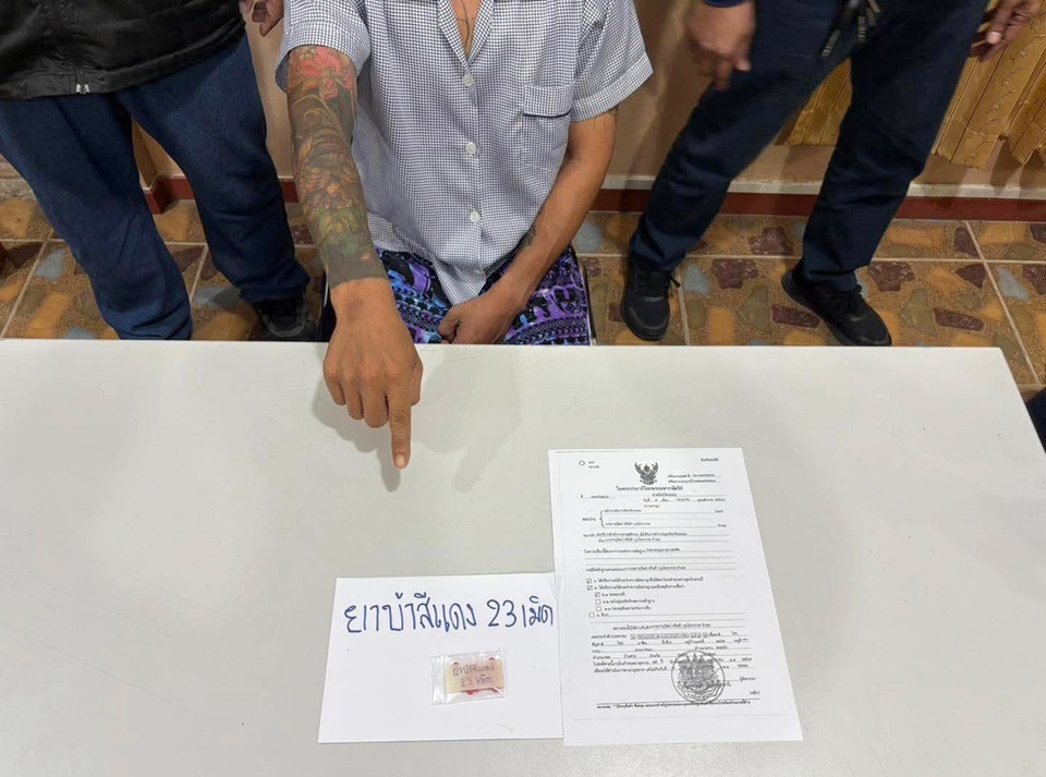 ต่อมาเจ้าหน้าที่เข้าจับกุมนายภานุวัฒน์ ผู้ต้องหาตามหมายจับ ได้ที่บ้านพักพร้อมของกลางยาบ้า จำนวน 23 เม็ด และโทรศัพท์มือถือ 1 เครื่อง ขณะเดียวกันยังควบคุมตัว นายประสิทธิ์ ที่ลักลอบเสพยาเสพติดได้อีก 1 ราย
