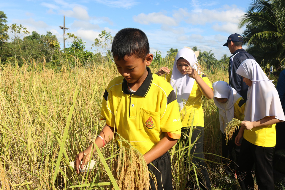 ความร่วมมือจากทุกภาคส่วน จากรุ่นใหญ่สู่รุ่นเยาว์บรรยากาศภายในงานเต็มไปด้วยความอบอุ่น โดยมีทั้งเกษตรกร ผู้นำชุมชน เจ้าหน้าที่รัฐ รวมถึงคณะครูและนักเรียนจากโรงเรียนบ้านกาแบง เข้าร่วมเรียนรู้วิธีการเกี่ยวข้าวแบบดั้งเดิม เพื่อปลูกฝังให้คนรุ่นใหม่ตระหนักถึงคุณค่าของอาชีพหลังสู้ฟ้าหน้าสู้ดิน และความสำคัญของความมั่นคงทางอาหารเติมเต็มองค์ความรู้ สู่เกษตรยั่งยืน