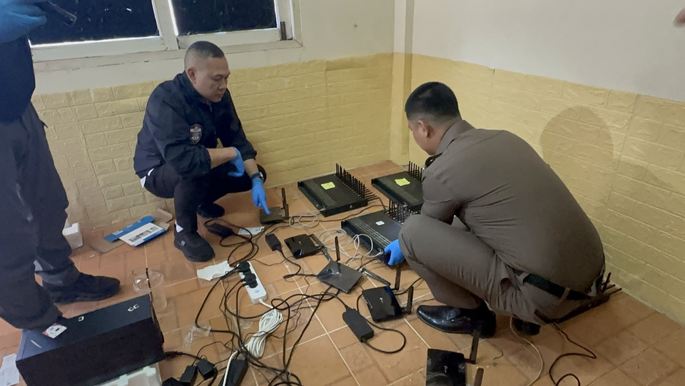 สืบเนื่องจากเมื่อวันที่ 5 พ.ย.68 ที่ผ่านมา จนท.ได้ตรวจยึด SIM Box ที่ จ.บึงกาฬ และ จ.มุกดาหาร พบความเชื่อมโยงถึงเป้าหมายที่ตั้ง SIM Box ในพื้นที่ อ.ท่าบ่อ จ.หนองคาย จนท.ได้รวบรวมพยานหลักฐาน และนำหมายค้นศาลจังหวัดหนองคาย ลงวันที่ 6 ม.ค.69 เข้าตรวจค้นบ้านหลังดังกล่าว สามารถยึดของกลางได้ดังนี้ เครื่องแปลงสัญญาณโทรศัพท์แบบใส่ซิมการ์ด (Sim box) 5 เครื่อง (32 ช่อง/เครื่อง),เครื่องกระจายสัญญาณอินเตอร์เน็ตแบบไร้สาย ชนิดใส่ซิมการ์ด 5 เครื่อง,ปลั๊กไฟ 2 อัน , เครื่องสำรองไฟ 2 เครื่อง , ซิมการ์ด 5 ซิม (สวมใส่อยู่ใน router wifi) , กล้องวงจรปิด 1 ตัว , ฝาครอบ power amplifier ตัวเครื่อง simbox 5 ชิ้น ,ฝาปิดหน้า power amplifier ตัวเครื่อง