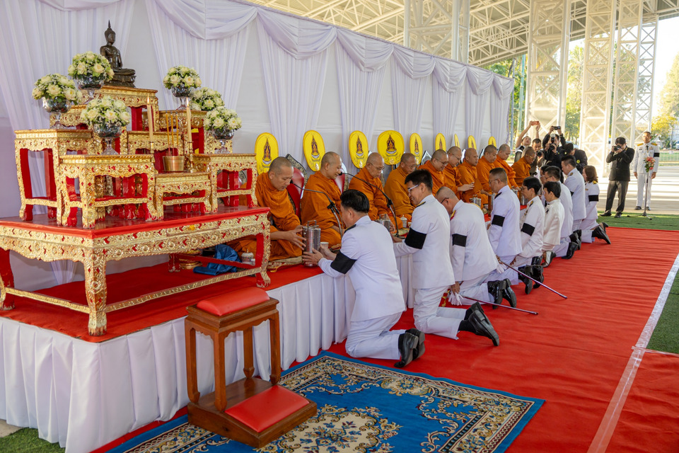 ต่อมา ผู้ว่าราชการจังหวัดพิษณุโลกได้กล่าวถวายพระพรชัยมงคล และบรรเลงเพลงมหาชัย ก่อนจะเข้าร่วมพิธีทำบุญตักบาตรพระสงฆ์ จำนวน 40 รูป ณ บริเวณถนนด้านหน้าศาลากลางจังหวัดพิษณุโลก ซึ่งบรรยากาศเป็นไปด้วยความสงบ เรียบร้อย และ สมพระเกียรติ