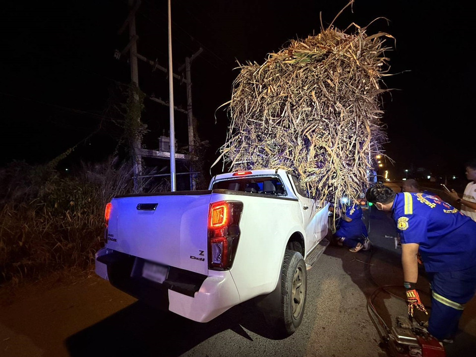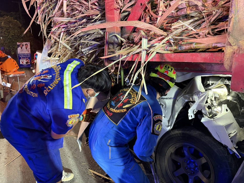 กาญจนบุรีเกิดอุบัติเหตุรับฤดูเปิดหีบอ้อย อาจารย์วิทยาลัยขับรถกระบะชนท้ายรถบรรทุกอ้อย 18 ล้อ หน้าหมู่บ้านเอื้ออาทรวังขนาย อ.ท่าม่วง บาดเจ็บสาหัส กู้ภัยเร่งตัดถ่างช่วยกลางดึก