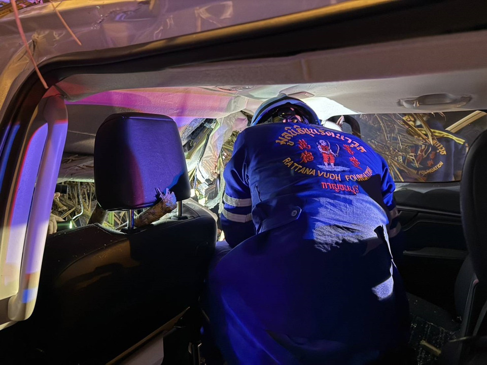 เมื่อเวลา 04.50 น. วันที่ 9 ม.ค.69 เจ้าหน้าที่ตำรวจ สภ.ท่าม่วง ได้รับแจ้งว่า ว่ามีอุบัติเหตุรถยนต์ชนกัน มีผู้ได้รับบาดเจ็บในที่เกิดเหตุบริเวณหน้าหมู่บ้านเอื้ออาทรวังขนาย หมู่ 3 ตำบลวังขนาย อำเภอท่าม่วง จังหวัดกาญจนบุรี จึงรับลงพื้นที่ตรวจสอบพร้อมประสานอาสาสมัครมูลนิธิขุนรัตนาวุธ เข้าช่วยเหลือทันที