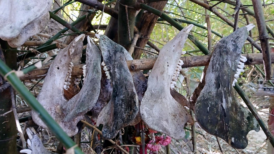 เมื่อชาวบ้านเกิดการป่วยไข้ หรือทรัพย์สิน สัตว์เลี้ยงสูญหาย จะนำรูปเทียนมาบอกเล่ากับปูสีตาทิพย์ ปู่สีตาทิพย์จะช่วย บันดาลให้ อาการป่วยไข้หายไป สิ่งของหายไปจะได้พบเจอ ตั้งแต่นั้นเป็นต้นมา ชาวบ้านจึงได้นำหัวหมูมาถวายนี้เองเป็นที่มาของโครงกระดูกจำนวนมากในป่าแห่งนี้ครับ
