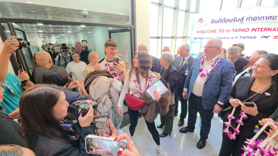 วันที่ 9 ม.ค.69 เมื่อเวลา 12.00 น.พล.ร.อ.อาภา ชพานนท์ ผอ.ท่าอากาศยานนานาชาติอู่ตะเภาระยอง-พัทยา พร้อมนายกัฬชัย เทพวรชัย รองผู้ว่าราชการจังหวัดระยอง นางกนกกิตติกา กฤตย์วุฒิกร ผู้อำนวยการภูมิภาคภาคตะวันออก การท่องเที่ยวแห่งประเทศไทย (ททท.) นางวันดี เผื่อนอุดม ผอ.ททท.ระยอง หน่วยงานภาครัฐ และผู้ประกอบการท่องเที่ยวจังหวัดระยอง ให้การต้อนรับนักท่องเที่ยว จำนวน 281 คน ที่เดินทางมากับเที่ยวบินปฐมฤกษ์ สายการบินเบลาเวีย เบลารุสเซียนแอร์ไลน์ ซึ่งได้เปิดเส้นทางบินตรงแบบเช่าเหมาลำจากท่าอากาศยานแห่งชาติมินสค์ สหพันธ์รัฐเบลารุส มายังสนามบินอู่ตะเภาฯ ทั้งนี้มีนายวลาดีมีร์ บาราวีคอฟ เอกอัครราชทูตสาธารณรัฐเบลารุสประจำประเทศไทย ร่วมต้อนรับนักท่องเที่ยวชาวเบลารุสดังกล่าวด้วย