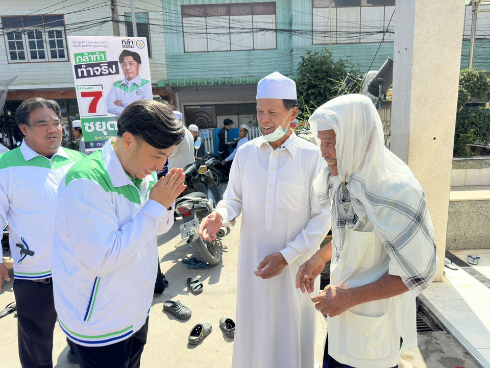 เมื่อเวลา 12.30 น. วันที่ 9 มกราคม 2569 นายชยุต สินพูนภักดิ์ ผู้สมัครสมาชิกสภาผู้แทนราษฎร (ส.ส.) จังหวัดปทุมธานี เขตเลือกตั้งที่ 4 เบอร์7 จากพรรคกล้าธรรม ลงพื้นที่เชิงรุกเข้าหาพี่น้องอิสลาม ณ.มัสยิดแก้วนิมิตร ตำบลคลองหนึ่ง อำเภอคลองหลวง เพื่อพบปะพูดคุยและร่วมกิจกรรมทางศาสนาในวันสำคัญของชุมชน