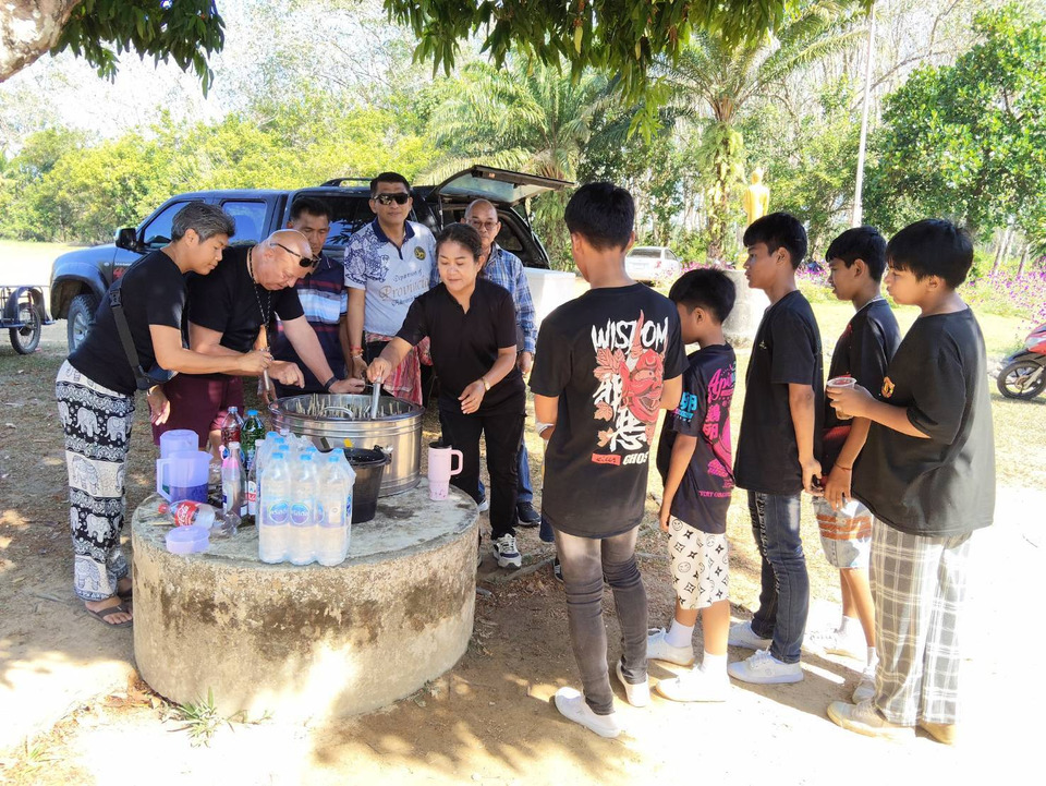 ในช่วงท้ายของกิจกรรมมีการเลี้ยงก๋วยเตี๋ยว ไก่ทอด น้ำดื่ม แต่ที่เป็นไฮไลในงานนี้ก็มี Mr. Rolf Kobs ชาวเยอรมัน ที่เดินทางมาด้วยภรรยาเป็นคนไทยที่อาศัยในหมู่บ้านดังกล่าว ได้ช่วยกันทำไอติมหลอด ซึ่งเป็นไอติมโบราณที่ทำด้วยน้ำหวานหลากหลายสีให้กับเด็กๆที่มายื่นเข้าแถวรอด้วยความดีใจและความอร่อยที่ได้ชิมไอติมหลอด