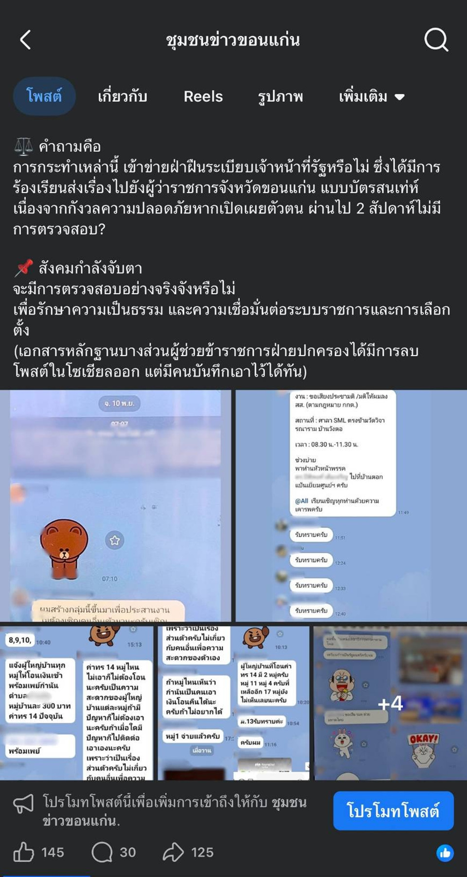 ในเวลาต่อมาผู้สื่อข่าวได้ตรวจสอบข้อเท็จจริงที่ศาลากลางจังหวัดขอนแก่น โดยนายขจรเกียรติ รักพานิชมณี ผวจ.ขอนแก่น กล่าวว่า ได้มีประชาชนส่งหนังสือร้องเรียนทางไปรษณีย์ถึงผู้ว่าราชการจังหวัดขอนแก่น ซึ่งหนังสือเพิ่งมาถึงหน้าห้องทำงาน แม้ตรวจสอบแล้วพบว่าถูกส่งมาตั้งแต่ประมาณ 2 สัปดาห์ที่ผ่สนมา ลักษณะเป็นบัตรสนเท่ห์จากรายละเอียดในหนังสือร้องเรียน ระบุว่ามีสารวัตรกำนัน คือ นายโชคชัย จันทร์วิเศษ มีรายชื่อเป็นผู้สมัคร สส.แบบบัญชีรายชื่อ ของพรรคเป็นธรรม และมีกำนันตำบลบ้านค้อ อำเภอเมืองขอนแก่น เป็นผู้จัดตั้งกลุ่มไลน์ชื่อ “ฝ่ายปกครองบ้านค้อ สส.” ซึ่งมีสมาชิกเป็นผู้ใหญ่บ้านในพื้นที่ตำบลบ้านค้อทั้ง 19 หมู่บ้าน รวมถึงผู้สมัคร สส.ปาร์ตี้ลิสต์ และผู้สมัคร สส.แบบแบ่งเขต เขต 4 ซึ่งจะมีการเลือกตั้งในวันที่ 8 ก.พ.2569 อีก 1 รายด้วย