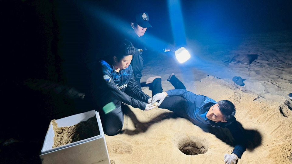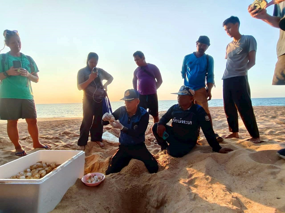 พบแม่เต่ามะเฟืองขึ้นวางไข่รังแรกฤดูกาล 2568-2569 ที่ชายหาดทุ่งดาบ พังงา รวม 105 ฟอง เจ้าหน้าที่ย้ายรังดูแลใกล้ชิด