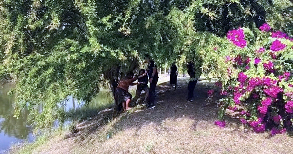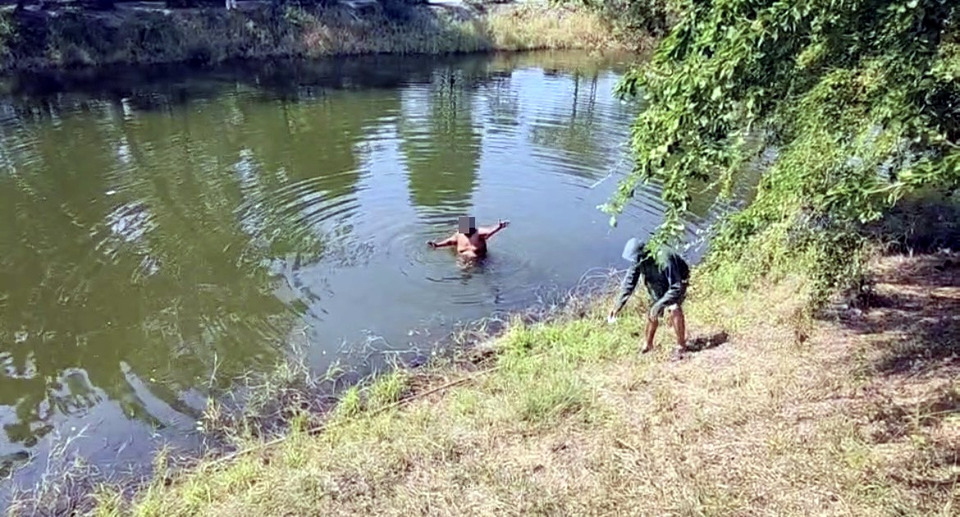 หนุ่มคลั่งยาเสพติดถือมีดอาละวาดหน้าโรงเรียนบ้านพุน้ำร้อน สุพรรณบุรี เจ้าหน้าที่ปกครองระงับเหตุ ก่อนหนีลงสระน้ำขอเงิน 500 บาทยอมขึ้น