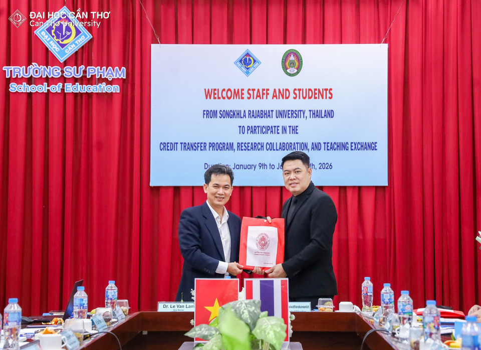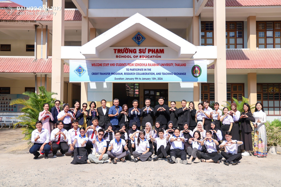 คณะครุศาสตร์ มหาวิทยาลัยราชภัฏสงขลา (มรภ.สงขลา) จัดโครงการส่งเสริมความร่วมมือการแลกเปลี่ยนการเรียนรู้ด้านครุศาสตร์ ณ Can Tho University สาธารณรัฐสังคมนิยมเวียดนาม ระหว่างวันที่ 9-15 มกราคม 2569 โดย ผศ.ดร.โสภณ ชัยวัฒนกุลวานิช คณบดีคณะครุศาสตร์ ได้นำคณาจารย์ผู้ควบคุมโครงการ อาจารย์ ดร.เอกพล ไพโรจน์ ผู้ช่วยคณบดี ผศ.ดร.จงกล บัวแก้ว ผศ.ดร.ณรงค์ กาญจนะ และ ผศ.ดร.พนัชกร พิทธิยะกุล อาจารย์คณะครุศาสตร์ พร้อมตัวแทนนักศึกษาคณะครุศาสตร์ที่ผ่านการคัดเลือกเข้าร่วมโครงการ จำนวน 18 คน เข้าพบคณะผู้บริหาร School of Education, Can Tho University นำโดย Dr. Le Van Lam, Vice Rector of Can Tho University Assoc. Prof. Huynh Anh Huy คณบดี พร้อมด้วย Assoc. Prof. Tran Van Minh Prof. Lam Quoc Anh และ Dr. Le Van Nhuong รองคณบดี ซึ่งได้ให้การต้อนรับคณะผู้มาเยือนอย่างอบอุ่น