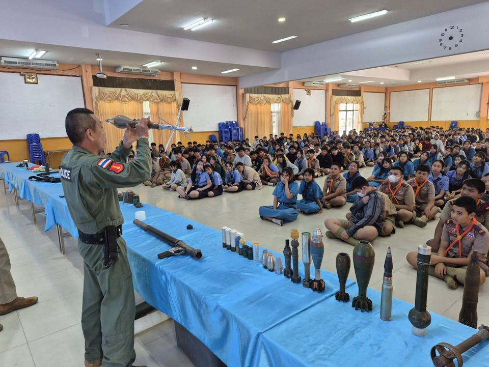 หน่วยเก็บกู้และทำลายวัตถุระเบิด EOD กองกำกับการสืบสวน ตำรวจภูธรจังหวัดบุรีรัมย์ ลงพื้นที่ให้ความรู้แก่เด็กนักเรียน ทั้งในพื้นที่แนวชายแดนไทย-กัมพูชา และพื้นที่ใกล้เคียงที่ได้รับผลกระทบจากการสู้รบ เพื่อให้ทราบเกี่ยวกับวัตถุระเบิด เพื่อให้ทราบถึงอันตรายจากระเบิด และลูกกระสุนปืนใหญ่ ที่กัมพูชายิงใส่ไทย และทราบวิธีปฏิบัติตน เมื่อเจอวัตถุต้องสงสัย เพื่อป้องกันอุบัติเหตุ และเป็นการสร้างความตระหนักรู้แก่กลุ่มนักเรียนและเยาวชน