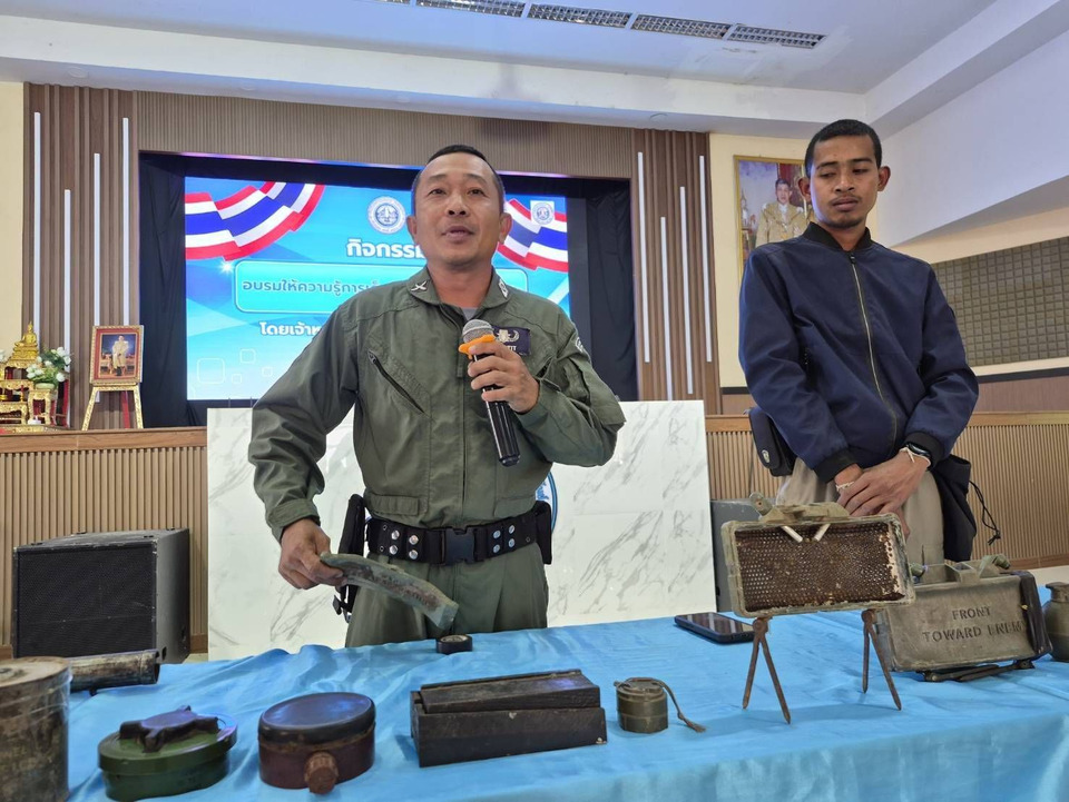 ด.ต.วิทิต เศลารักษ์ ผบ.หมู่ กก.สืบสวน ภ.จว.บุรีรัมย์ (ชุด EOD ภ.จว.บุรีรัมย์) กล่าวว่า ได้ตระเวนออกบรรยายให้ความรู้เกี่ยวกับวัตถุระเบิดเบื้องต้น แกโรงเรียนต่างๆ ทั้งในพื้นที่แนวชายแดนไทย-กัมพูชา และพื้นที่ใกล้เคียงที่ได้รับผลกระทบ เพื่อให้ทราบถึงอันตรายและวิธีป้องกันอันตรายจากวัตถุระเบิดดังกล่าว ทั้งวิธีการปฎิบัติและข้อจดจำว่าวัตถุระเบิดแต่ละชนิด เพื่อรับรู้ถึงอันตรายที่เกิดขึ้น จากวัตถุระเบิดที่ตกค้างอยู่ในพื้นที่แนวชายแดน โดยได้มีการนำวัตถุระเบิดที่ตกค้างในพื้นที่การสู้รบ ซึ่งมีทั้งเศษซากกระสุนปืนใหญ่ชนิดต่างๆ และที่ยังไม่แตกระเบิด ที่ได้ทำการปลดชนวนและทำการนิรภัยจนปลอดภัยแล้ว ก่อนนำมาจัดแสดงประกอบการบรรยายให้ความรู้