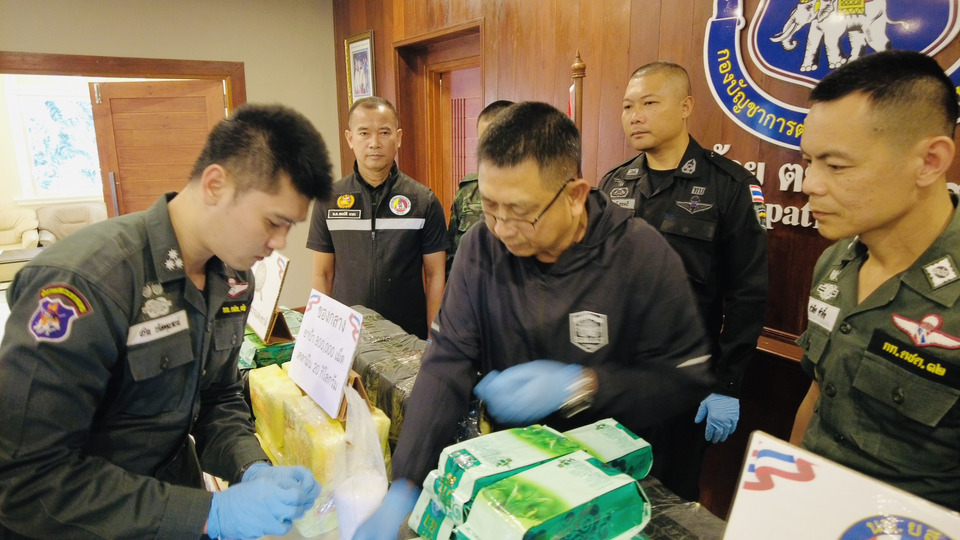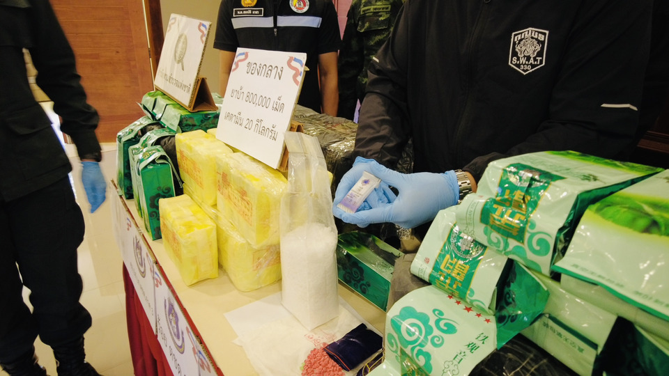 ในเบื้องต้นพบ เคตามีน ทั้งหมดจำนวน 20 ถุง ถุงละประมาณ 1 กิโลกรัม รวม 20 กิโลกรัม และยาบ้า จำนวน 4 กระสอบ กระสอบละประมาณ 200,000 เม็ด รวมของกลางทั้งหมดยาบ้าประมาณ 800,000 เม็ด