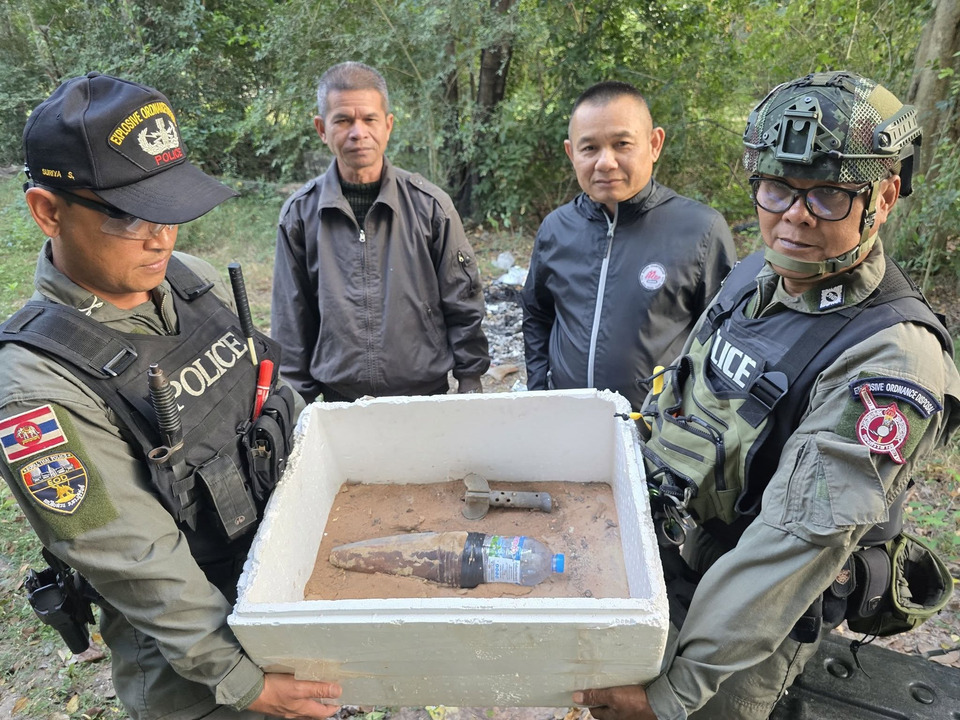 เมื่อวันที่ 15 ม.ค.69 พ.ต.อ.เจตสฤษดิ์ แพ่งศรีสาร รองผู้บังคับการตำรวจภูธรจังหวัดบุรีรัมย์ (รอง ผบก.ภ.จว.บุรีรัมย์) เปิดเผยว่า ตำรวจหน่วยเก็บกู้วัตถุระเบิด (EOD) กองกำกับการสืบสวน ตำรวจภูธรจังหวัดบุรีรัมย์ ได้ร่วมกับ เจ้าหน้าที่หน่วยปฏิบัติการทุ่นระเบิดด้านมนุษยธรรมที่ 3 ศูนย์ปฏิบัติการทุ่นระเบิดแห่งชาติ (TMAC) ศูนย์บัญชาการทางทหาร กองบัญชาการกองทัพไทย และหน่วยงานที่เกี่ยวข้อง ได้ออกทำการสำรวจเพื่อพิสูจน์ทราบ เก็บกู้ และทำลายสรรพาวุธระเบิด ในพื้นที่ที่ได้รับผลกระทบจากการโจมตีของฝ่ายกัมพูชา ที่ถูกยิงตกลงมาในพื้นที่ อ.บ้านกรวด จ.บุรีรัมย์ ซึ่งเป็นพื้นที่บริเวณแนวชายแดนไทย-กัมพูชา ระหว่างการสู้รบห้วงที่ผ่านมา