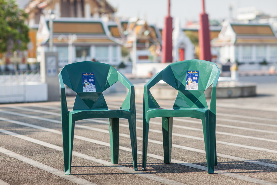 สำหรับเก้าอี้รักษ์โลกนี้ผลิตจากพลาสติกใช้แล้วที่ประชาชนร่วมกันคัดแยกในกิจกรรมต่าง ๆ ที่กรุงเทพมหานคร ร่วมกับภาคีเครือข่ายจัดขึ้นในพื้นที่กรุงเทพมหานคร เช่น งานพระราชพิธีพระบรมศพสมเด็จพระนางเจ้าสิริกิติ์ พระบรมราชินีนาถ พระบรมราชชนนีพันปีหลวง และงานกาชาดประจำปี 2568 เป็นต้น ซึ่งกรุงเทพมหานคร โดยสำนักสิ่งแวดล้อมและสำนักงานเขต ร่วมกันรณรงค์ส่งเสริม อำนวยความสะดวก และแนะนำประชาชนผู้เข้าร่วมงานคัดแยกขยะตั้งแต่ต้นทางตามแนวทาง “ไม่เทรวม” แยกขยะ เป็น 3 ประเภท เพื่อนำไปใช้ประโยชน์และจัดการอย่างถูกวิธี ประกอบด้วย ขยะอินทรีย์ สำนักงานเขตพื้นที่นำไปหมักทำปุ๋ย และส่งต่อเกษตรกรเป็นอาหารสัตว์ ขยะทั่วไป เก็บรวบรวมส่งกำจัดอย่างถูกสุขลักษณะ และขยะรีไซเคิล คัดแยกเพื่อนำเข้าสู่กระบวนการรีไซเคิล เป็นการลดและคัดแยกขยะตั้งแต่ต้นทางอย่างเป็นระบบ และนำกลับเข้าสู่กระบวนการรีไซเคิล โดยนำมาผลิตเป็นเก้าอี้รักษ์โลกด้วยเทคโนโลยีรีไซเคิลขั้นสูงจาก SCGC เพื่อนำไปใช้ในกิจกรรมต่าง ๆ ของกรุงเทพมหานครต่อไป