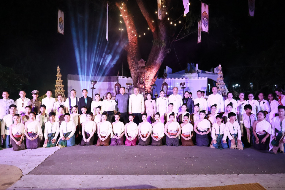 ณ สวนสุขภาพเฉลิมพระเกียรติ สมเด็จพระนางเจ้าสิริกิติ์ พระบรมราชินีนาถ พระชนมายุครบ 5 รอบ อำเภอเมืองมหาสารคาม จังหวัดมหาสารคาม โดยมี นายชุมพิชญ์ เดชะรัฐ ผู้ว่าราชการจังหวัดมหาสารคาม เป็นประธาน ปีนี้ ได้น้อมนำเรื่องราวแห่ง น้ำพระราชหฤทัย พระเมตตา และพระมหากรุณาธิคุณของสมเด็จพระนางเจ้าสิริกิติ์ พระบรมราชินีนาถ พระบรมราชชนนีพันปีหลวง มาเชื่อมโยงกับตำนานความเชื่อและวิถีแห่งประเพณีงานบุญเบิกฟ้า ของจังหวัดมหาสารคาม ด้วย “ข้าว” ที่เป็นหัวใจของงานประเพณีบุญเบิกฟ้า โดยมีการจัดแสดงเรื่องราวแห่งพระมหากรุณาธิคุณ ผ่านงานจากโครงการฟาร์มตัวอย่างตามพระราชดำริฯ และโครงการส่งเสริมศิลปาชีพฯ ในพื้นที่จังหวัดมหาสารคาม การสาธิตการแปรรูปและผลิตภัณฑ์ต่าง ๆ จากข้าว รวมถึงผ้ามัดหมี่ “ธัญภักดิ์ : เมล็ดพันธุ์แห่งความจงรักภักดี” ที่สร้างสรรค์ขึ้นเพื่อน้อมรำลึกในพระมหากรุณาธิคุณและแสดงความจงรักภักดีที่ชาวมหาสารคามมีต่อสมเด็จพระพันปีหลวง โดยผูกสร้างงานจากลาย “ข้าวสาร” ลายผ้ามัดหมี่โบราณของชาวจังหวัดมหาสารคามที่พบได้ในทุกพื้นที่ของจังหวัด เป็นลวดลายที่ดูเรียบง่าย หากแต่สะท้อนอัตลักษณ์และวิถีชีวิตของชุมชนอย่างชัดเจน ด้วยประชากร ส่วนใหญ่ประกอบอาชีพเกษตรกรรม ปลูกข้าว ทำนา ช่างทอผ้าจึงนำภาพของ “ข้าว” ซึ่งเป็นหัวใจของชีวิต มาร้อยเรียงผ่านจินตนาการและฝีมือ จนกลายเป็นลวดลายอันทรงคุณค่าในผืนผ้า
