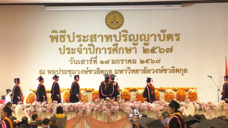 ในโอกาสนี้ ผศ.ดร.ณัฐวัฒม์ วงษ์ชวลิตกุล อธิการบดีมหาวิทยาลัยวงษ์ชวลิตกุล ในนามคณะกรรมการสภามหาวิทยาลัย คณะผู้บริหาร คณาจารย์ และแขกผู้มีเกียรติ ได้ร่วมเป็นสักขีพยานในพิธี พร้อมระบุว่า ปัจจุบันมหาวิทยาลัยเปิดจัดการศึกษา 4 ระดับ ได้แก่ ปริญญาตรี ประกาศนียบัตรบัณฑิต ปริญญาโท และปริญญาเอก โดยตลอดระยะเวลาที่ผ่านมาได้ผลิตบัณฑิตออกไปรับใช้สังคมและประเทศชาติมาแล้วกว่า 28,000 คน