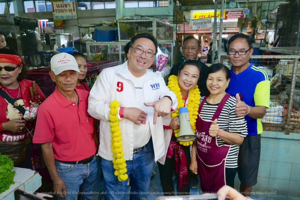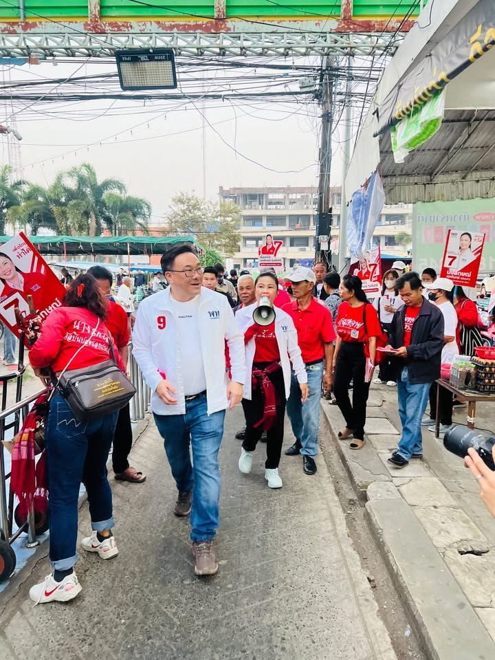 ที่ตลาดสดเทศบาลเมืองมหาสารคาม นายจุลพันธ์ อมรวิวัฒน์ หัวหน้าพรรคเพื่อไทย พร้อมด้วย น.ส.นงลักษณ์ ทุงจันทร์ หรือน้องจ๋า ผู้สมัคร ส.ส.มหาสารคาม เขต 1 เบอร์ 7 พรรคเพื่อไทย ลงพื้นที่ตลาดสด เดินทักทายพ่อค้าแม่ค้าและประชาชนที่มาจับจ่ายตลาดเช้า พร้อมขอคะแนนให้กับ น.ส.นงลักษณ์ เบอร์ 7 บัตรสีเขียว และกากบาทให้พรรคเพื่อไทย เบอร์ 9 บัตรสีชมพู โดยมีพ่อค้าแม่ค้าในตลาดให้การต้อนรับด้วยความอบอุ่น มอบพวงมาลัยดอกดาวเรือง และดอกกุหลาบให้กับนายจุลพันธ์ และ น.ส.นงลักษณ์ พร้อมให้กำลังใจ ขอให้สู้ๆ และชนะการเลือกตั้ง