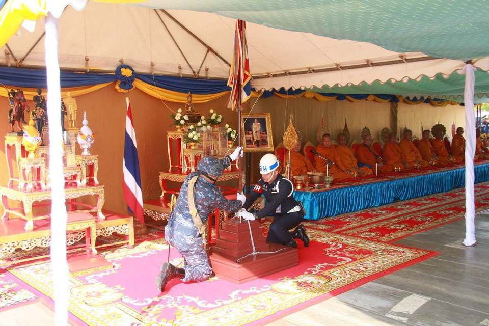โดยในพิธีสงฆ์ มี พระธรรมวชิรสิทธาจารย์ เจ้าคณะภาค 15 เจ้าอาวาสวัดคลองวาฬ พระอารามหลวง เป็นประธานฝ่ายสงฆ์ พร้อมด้วย พระเทพวชิรสุธี เจ้าคณะจังหวัดฯ (ธรรมยุต) เจ้าอาวาสวัดธรรมิการามวรวิหาร พระศรีปริยัติเมธี รองเจ้าคณะจังหวัด(มหานิกาย) ผู้ช่วยเจ้าอาวาสวัดคลองวาฬ พระเมธีคุณาภรณ์ รองเจ้าคณะจังหวัดฯ(ธรรมยุต) เจ้าอาวาสวัดเกาะหลัก โดยนิมนต์ พระสงฆ์จากพระอารามหลวงทั้ง 3 วัด ประกอบด้วย วัดคลองวาฬ พระอารามหลวง วัดธรรมิการามวรวิหาร พระอารามหลวง วัดเกาะหลัก พระอารามหลวง สวดเจริญพระพุทธมนต์