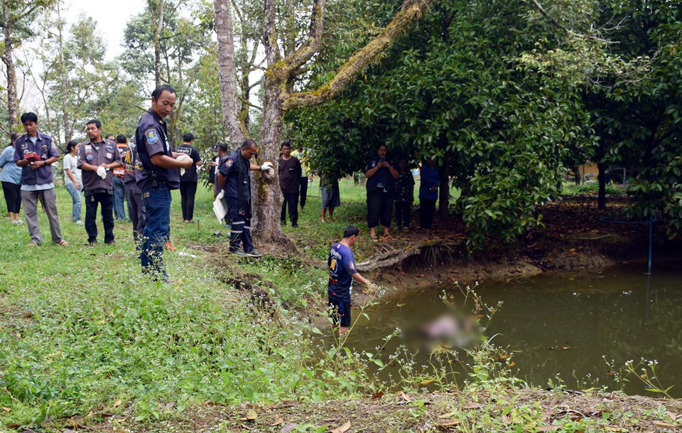 จากการตรวจสอบบริเวณใต้ต้นมังคุดริมสระ เจ้าหน้าที่พบรองเท้าแตะและไม้เท้าช่วยพยุงเดินของคุณยายวางทิ้งไว้ นอกจากนี้ยังมีร่องรอยการลื่นไถลบริเวณริมขอบสระ เจ้าหน้าที่จึงได้บันทึกภาพและเก็บรวบรวมไว้เป็นหลักฐาน