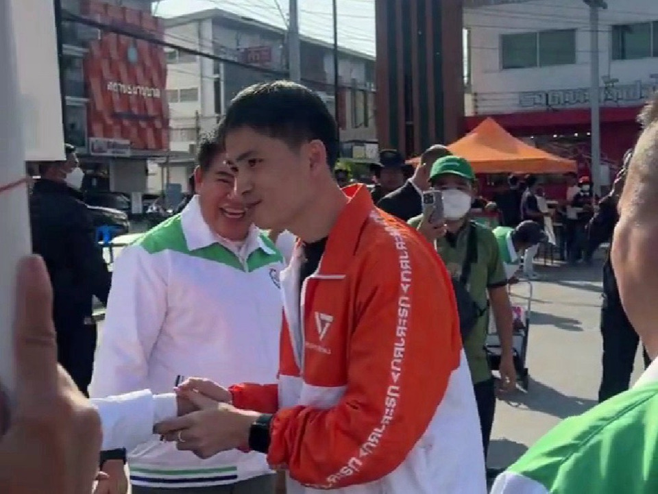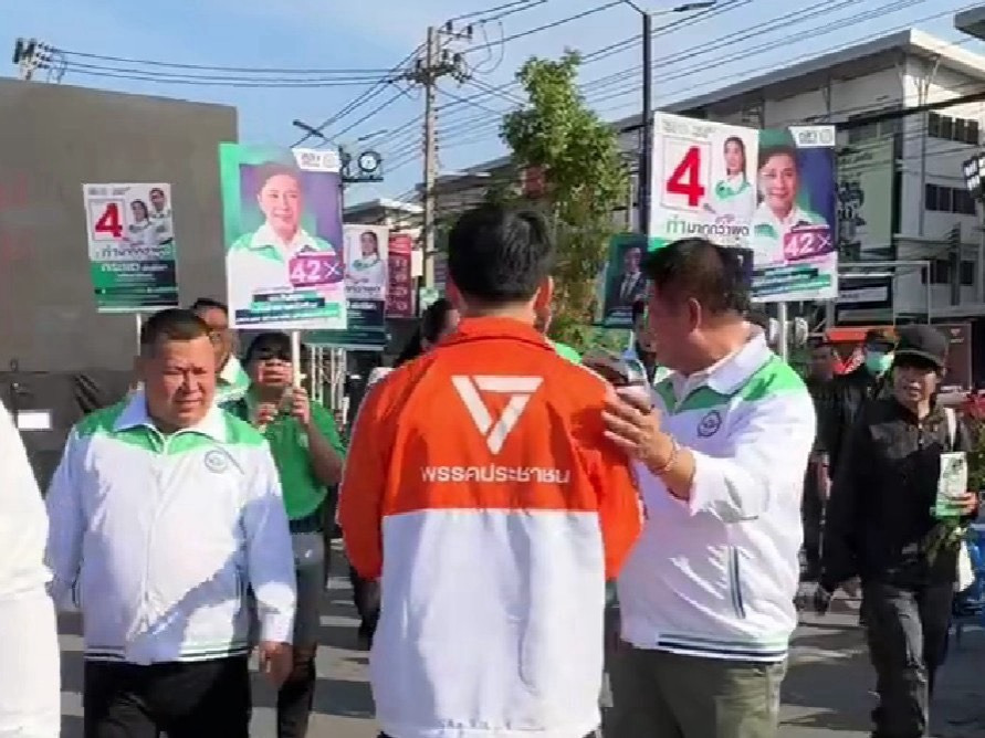 วันที่19 ม.ค. 2569 ที่จ.ปทุมธานี ผู้สื่อข่าวรายงานบรรยากาศการหาเสียงเลือกตั้งในพื้นที่จ.ปทุมธานี โดยนายธนภัทร ตระกูลภูชัย ผู้สมัครสส.ปทุมธานี เขต 6 พรรคประชาชน บังเอิญพบกับ ร.อ.ธรรมนัส พรหมเผ่า ประธานพรรคกล้าธรรม ที่กำลังช่วยผู้สมัครของพรรคกล้าธรรมหาเสียงอยู่นั้น นายธนภัทร ได้เข้าไปยกมือไหว้ทักทาย ในขณะที่ ร.อ.ธรรมนัส ได้รับไหว้พร้อมส่งยิ้มและเอามือแตะไหล่ทักทายตอบอย่างเป็นกันเอง