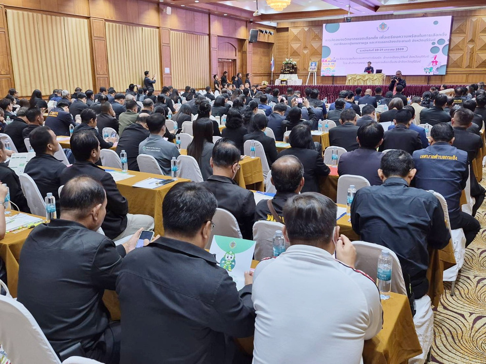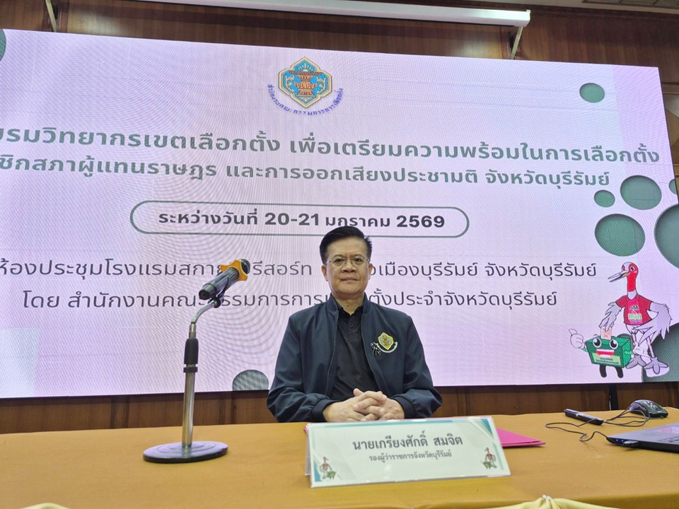 วันที่ 20 ม.ค.69 ที่โรงแรม สกายวิว รีสอร์ท ต.เสม็ด อ.เมือง จังหวัดบุรีรัมย์ นายเกรียงศักดิ์ สมจิต รองผู้ว่าราชการจังหวัดบุรีรัมย์ เป็นประธานเปิดการอบรมวิทยากรเขตเลือกตั้ง เพื่อเตรียมความพร้อมในการเลือกตั้งสมาชิกสภาผู้แทนราษฎรและการออกเสียงประชามติ โดยมี นายสุรพงษ์ ทิพย์โอสถ ผู้อำนวยการสำนักงาน กกต.ประจำจังหวัดบุรีรัมย์ , ผู้ตรวจการเลือกตั้งประจำจังหวัดบุรีรัมย์ , ผู้อำนวยการการเลือกตั้งประจำเขตเลือกตั้ง และคณะกรรมการการเลือกตั้งประจำเขตเลือกตั้ง ทั้ง 10 เขตเลือกตั้ง รวมทั้งสิ้น 180 คน เข้าร่วม