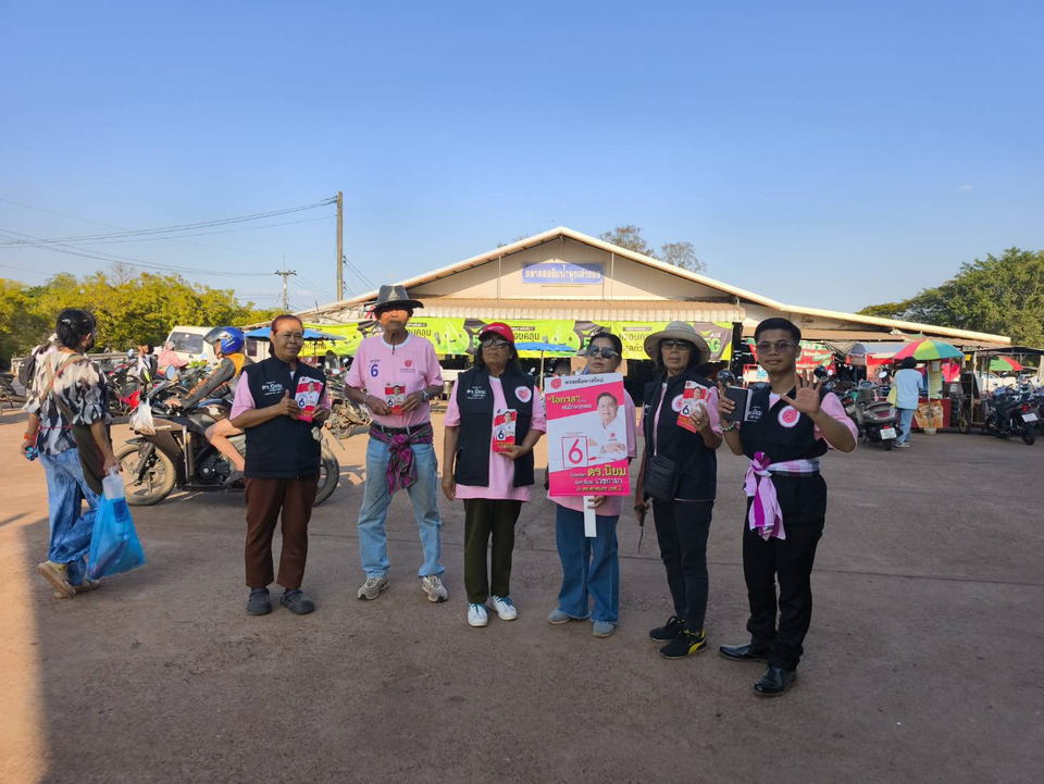 พร้อมกันนี้ ยังมอบใบปลิวแผ่นพับนโยบายพรรค เช่น นโยบายเร่งด่วนเรียนฟรีถึงปริญญาตรี