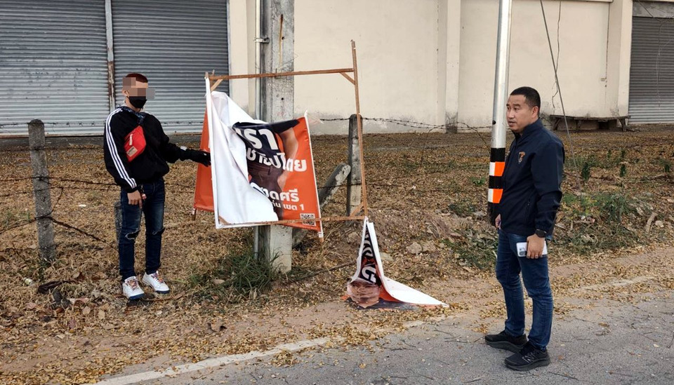 ตำรวจขอนแก่นจับชายวัย 40 ปี ทำลายป้ายหาเสียงภูมิใจไทย-พรรคประชาชน รับทำเพราะไม่ชอบการเมือง ตรวจพบประวัติลักทรัพย์ที่เชียงใหม่
