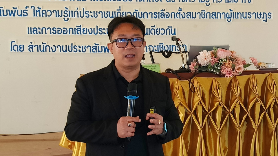 วันที่ 21 ม.ค.69 เวลา 09.00-14.00 น. ที่ห้องชลธี 2 โรงแรมวันธารา เวลเนสรีสอร์ท แอนด์โฮเทล ต.คลองนา อ.เมือง จ.ฉะเชิงเทรา น.ส.สมฤทัย เพ็งแจ่ม ประชาสัมพันธ์ จ.ฉะเชิงเทรา พร้อมด้วยนายป้องปราการ โสธรเทวาพิทักษ์ ผอ.กกต.ฉะเชิงเทรา ได้จัดกิจกรรมพัฒนาเครือข่ายประชาสัมพันธ์ เพื่อเสริมสร้างทักษะ สร้างความรู้ ความเข้าใจ แนวทางในการประชาสัมพันธ์ให้ความรู้แก่ประชาชนเกี่ยวกับ การเลือกตั้งสมาชิกสภาผู้แทนราษฎรและการออกเสียงประชามติ ในวันที่ 8 ก.พ.69