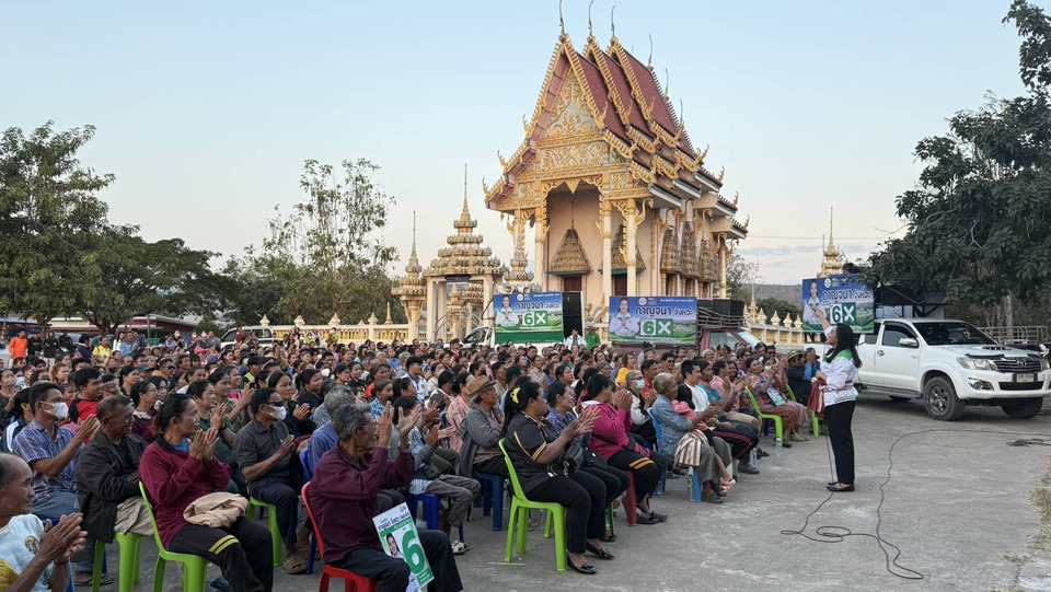 เมื่อวันที่21 มกราคม 69 ณ วัดชีลองเหนือ ม.4 ต.ห้วยต้อน อ.เมือง จ.ชัยภูมิ บรรยากาศการแข่งขันเลือกตั้งสมาชิกสภาผู้แทนราษฎรเขต 4 กลับมาทวีความเข้มข้นอีกครั้ง เมื่อ นางสาวกาญจนา จังหวะ หรือที่ชาวบ้านรู้จักในชื่อ “อิหล่าติ๊ก” ผู้สมัครหมายเลข 6 จากพรรคกล้าธรรม เปิดเวทีปราศรัยใหญ่ ปลุกความหวังพี่น้องประชาชนจาก 12 หมู่บ้านที่ตบเท้าเข้าร่วมฟังแนวนโยบายกว่า 1,000 คน จนเต็มพื้นที่วัด