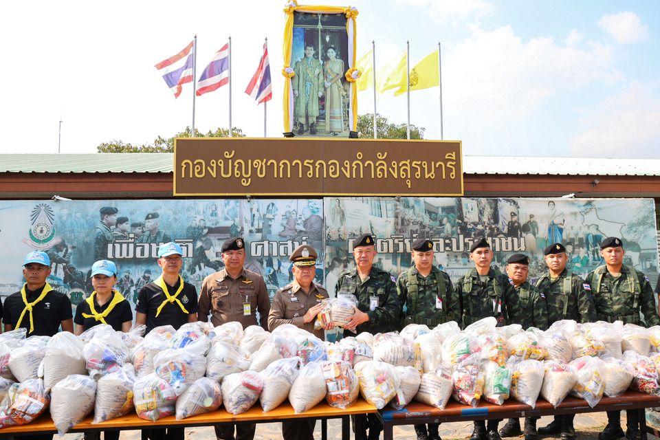 ต่อมา เมื่อวันที่ 21 มกราคม 2569 พล.ต.ต.สุคนธ์ ศรีอรุณ ผบก.ภ.จว.สุรินทร์ พร้อมด้วย พ.ต.อ.ชัยณรงค์ บุญด้วง และ พ.ต.อ.ยศวัจน์ งามสง่า รอง ผบก.ภ.จว.สุรินทร์ ได้นำข้าราชการตำรวจจิตอาสา มอบถุงยังชีพจำนวน 400 ชุด ให้กับกองกำลังสุรนารี โดยมี พันเอกภูวเดช อุทัยพรหม เลขาธิการกองอำนวยการรักษาความมั่นคงภายในภาค 2 ส่วนแยก 2 เป็นผู้แทนรับมอบ เพื่อกระจายต่อไปยังเจ้าหน้าที่ด่านหน้าในพื้นที่ปฏิบัติการตามแนวชายแดนต่อไป