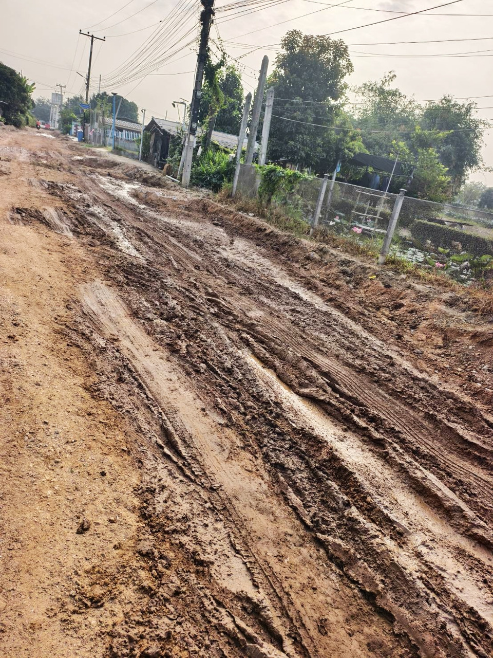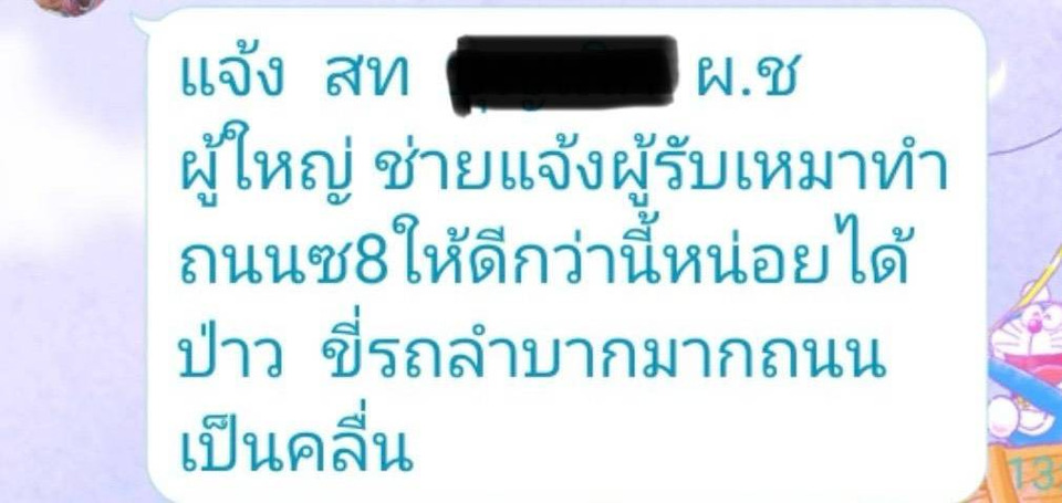วันที่ 22 ม.ค.69 ผู้สื่อข่าวรายงานว่า ที่หมู่ 6 หนองเสือ ซอย 8 ตำบลกรับใหญ่ อำเภอบ้านโป่ง จังหวัดราชบุรี ได้มีผู้รับเหมา ช่างทำถนน เข้ามาดำเนินการรื้อถนนเก่าออกตลอดทั้งเส้นทาง โดยที่ชาวบ้านไม่รู้ล่วงหน้ามาก่อน ว่าจะมีช่างเข้ามารื้อทำถนน จึงทำให้สัญจรไปมาลำบาก ถนนเป็นหลุม เป็นบ่อ และเป็นขี้เลน รวมถึงเวลารถแล่นผ่าน ฝุ่นละอองจากถนนปลิวเข้าบ้านเรือนเดือดร้อนกันทั้งซอย เสื้อผ้าที่ตากไว้ โดนฝุ่นจับแดงเถือก ต้องซักใหม่หลายรอบ ตอนนี้ไม่สามารถตากเสื้อผ้าได้ รวมถึงผู้รับเหมาดันมาทำท่อประปาแตกหัก เสียหาย ทำให้เดือดร้อนหนักเข้าไปอีก ยิ่งตอนนี้ไม่มีน้ำใช้ อุปโภคและดำเนินการในชีวิตประจำวัน