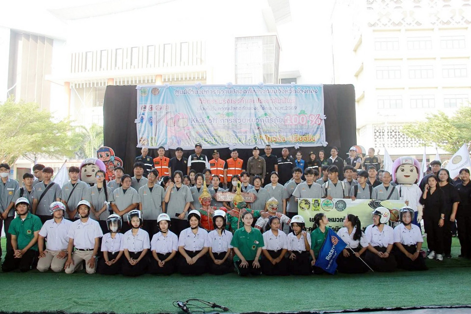 อ่างทองประกาศ D-Day เข้มมาตรการสวมหมวกนิรภัย 100% เริ่ม 15 กุมภาพันธ์ 2569 ฝ่าฝืนจับ-ปรับจริง ผู้ว่าฯ นำทุกภาคส่วนรณรงค์วันความปลอดภัยทางถนน ย้ำ “ห่วงหัวให้ตัวคุณ” ลดสูญเสียจากอุบัติเหตุ